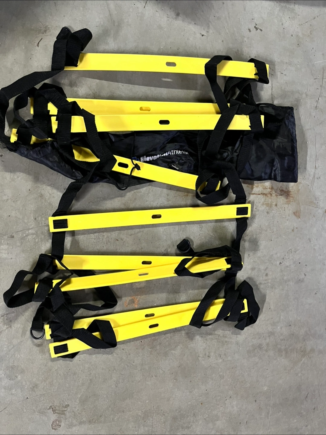 Selling an agility ladder from Elevate Athletics, perfect for improving your speed and coordination! Also included are gymnastic rings, great for building upper body strength and core stability. Both are in good condition and ready for your next workout!