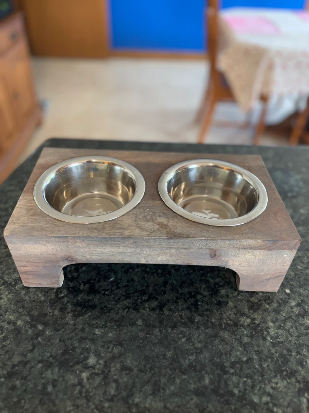 Elevated Double Dog Bowl Feeder - Wood & Stainless Steel