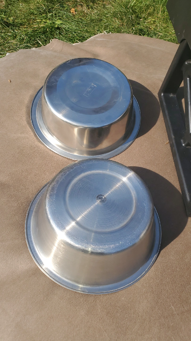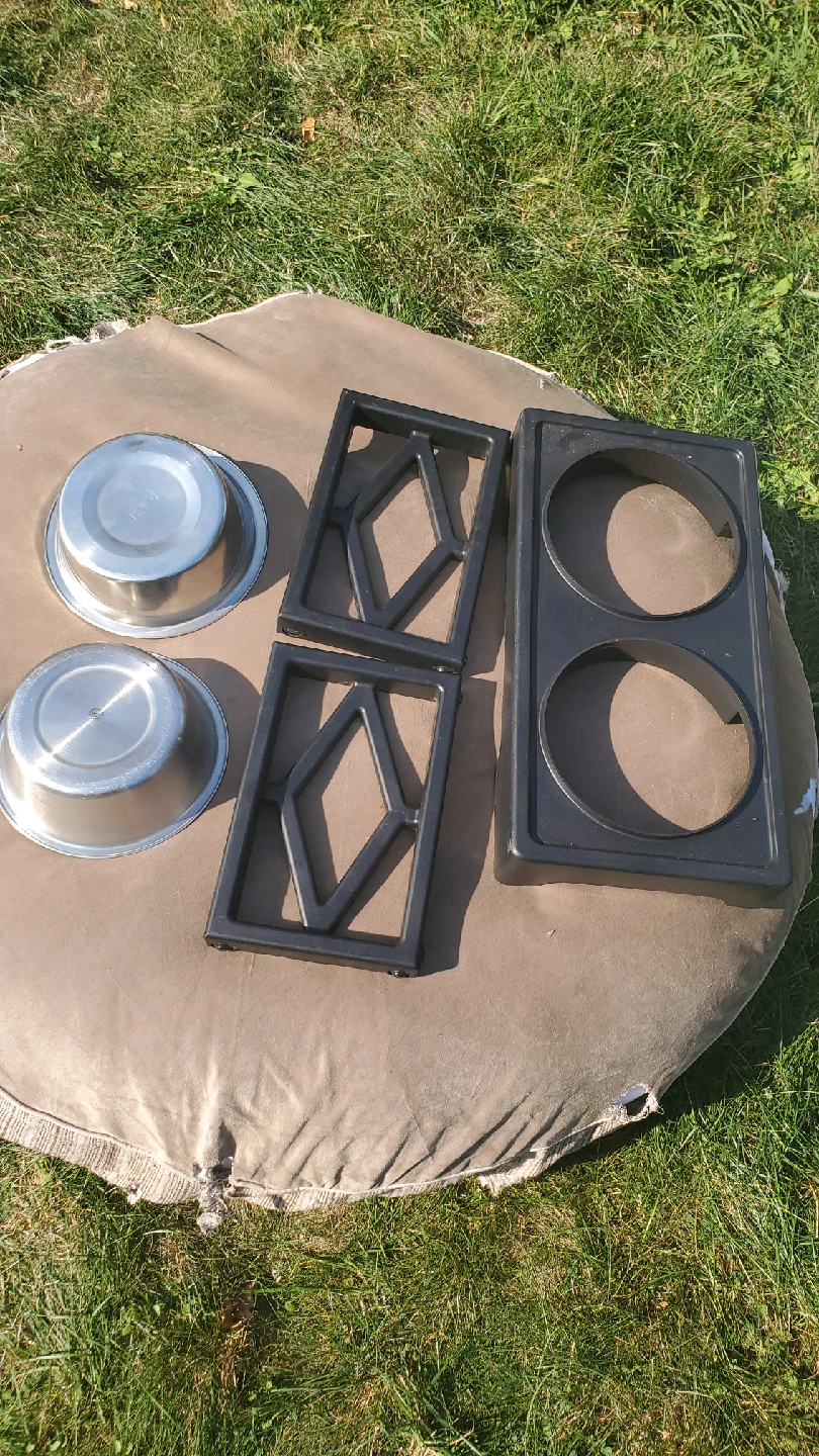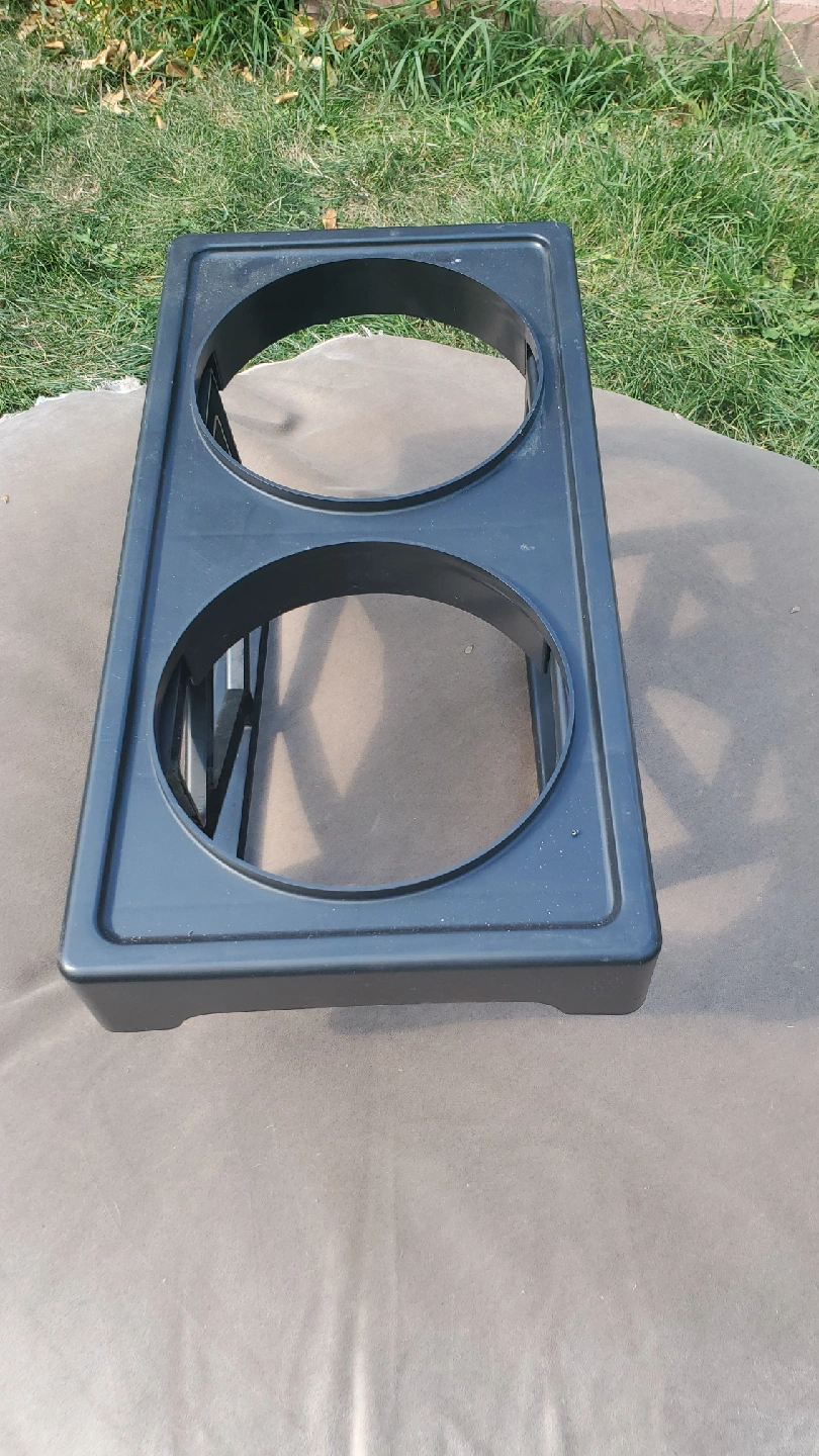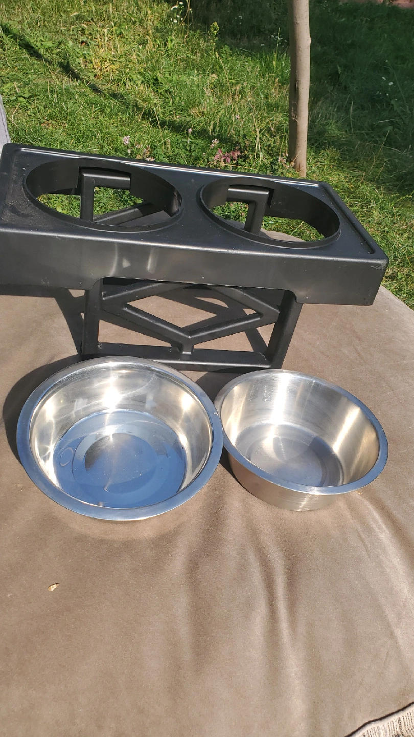 Selling a used elevated double dog bowl stand. It comes with two stainless steel bowls and a black stand. Great for medium to large sized dogs!