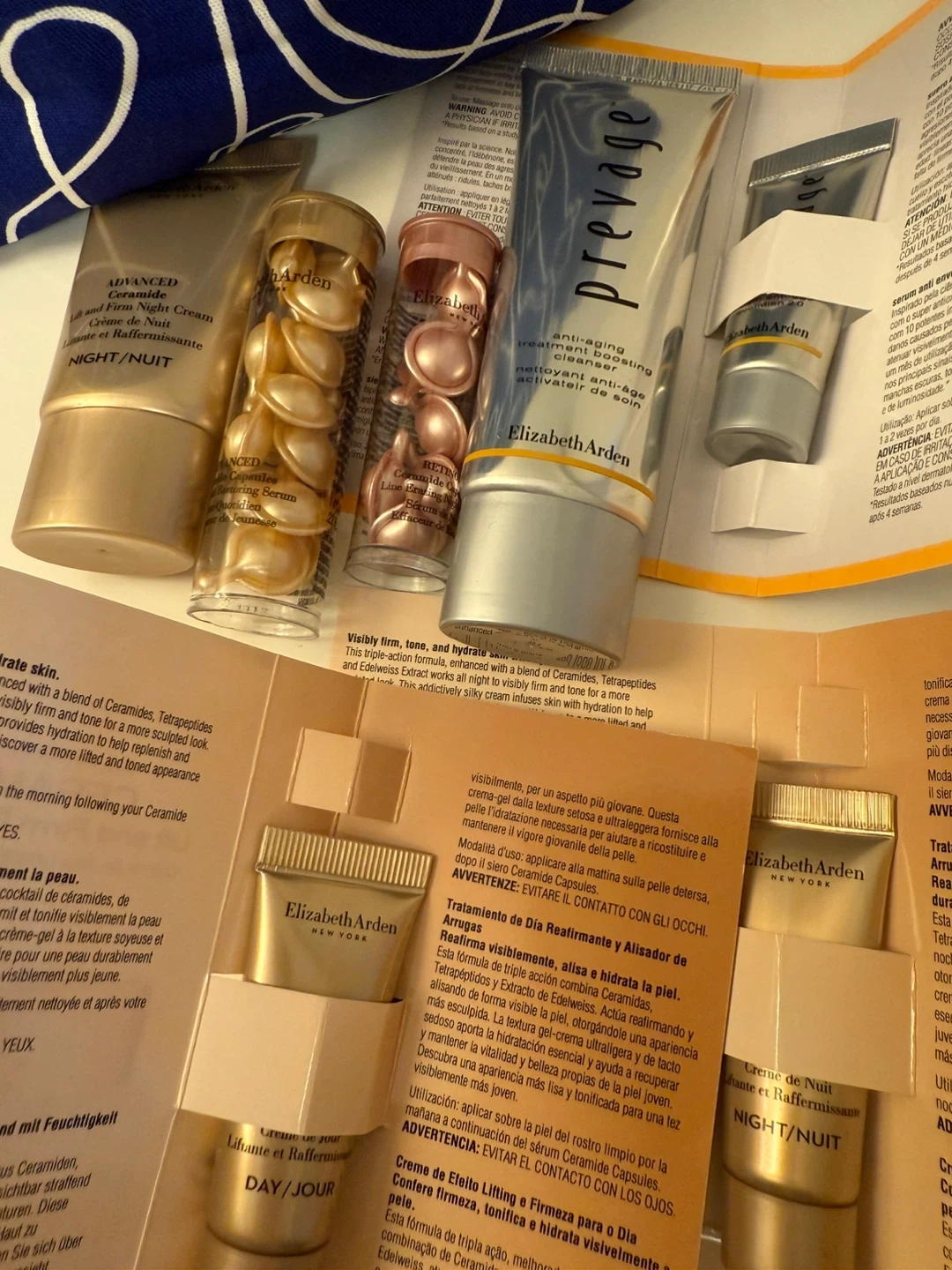 Selling a set of Elizabeth Arden skincare products! This includes Advanced Ceramide Capsules, Prevage anti-aging treatment, and more! Perfect for trying out a range of their popular items 7 item