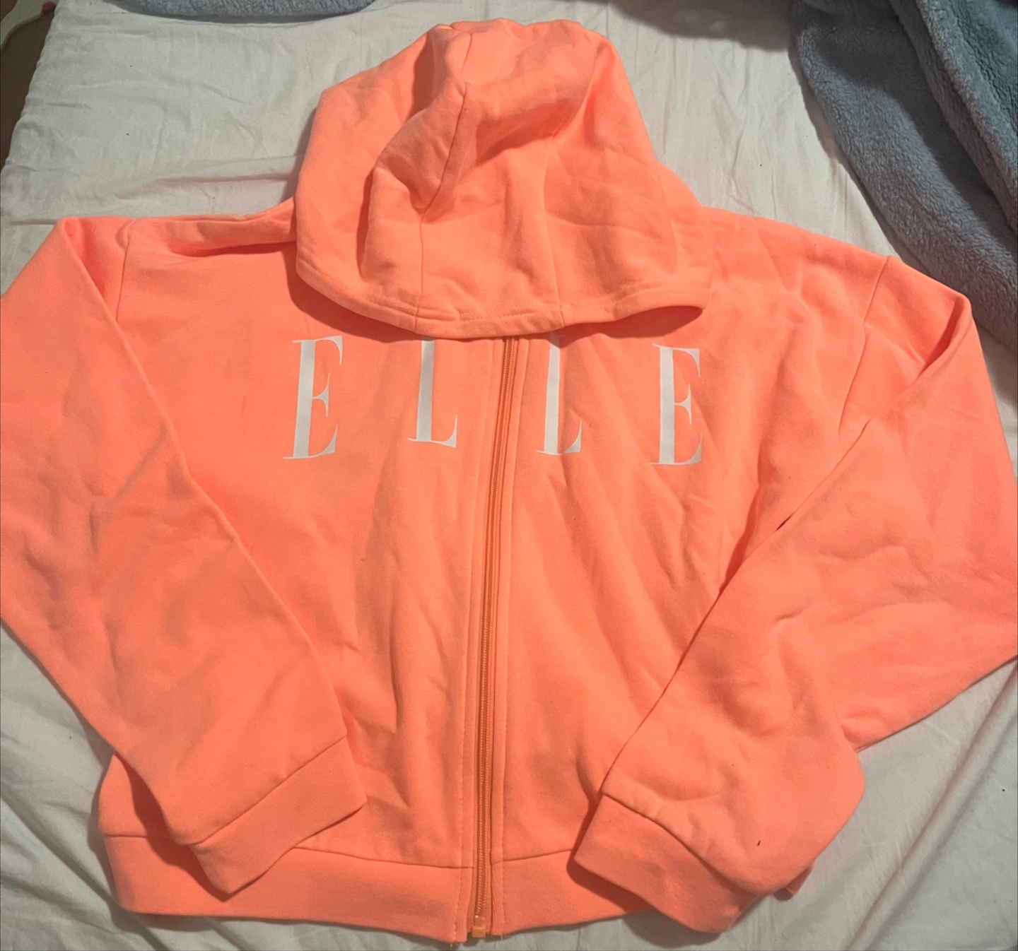 Selling a peach-coloured zip-up hoodie from Elle! It's in great condition and ready for a new home. Perfect for layering or just lounging around