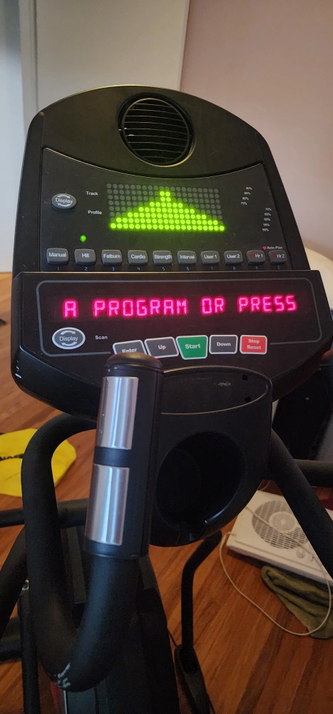 Elliptical machine in good working condition! It has different programs to choose from such as manual, hill, fatburn, cardio, strength, interval, and user settings