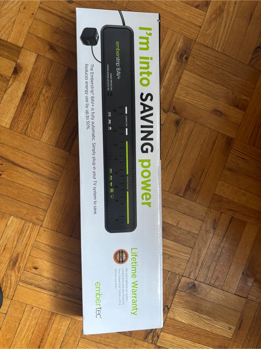 I'm selling an Embertec Emberstrip 8AV+ power-saving bar! This surge-protected power bar is designed to automatically reduce energy use by up to 50%. Simply plug in your TV system to start saving power. It also comes with a lifetime warranty!