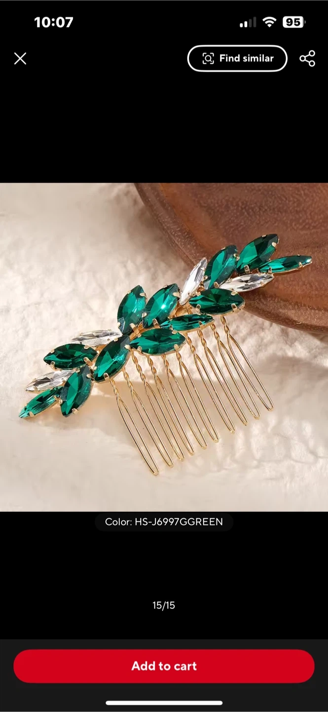 These beautiful emerald green crystal hair accessories will add a touch of sparkle to any hairstyle! Perfect for weddings, parties, or just adding a bit of glam to your everyday look