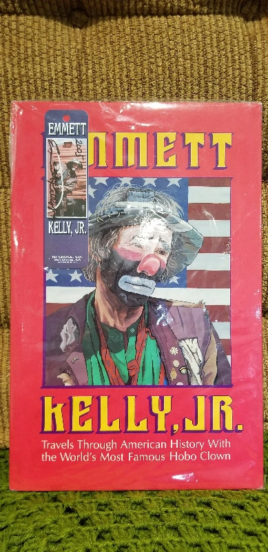 Emmett Kelly, Jr.: Travels Through American History With the World's Most Famous Hobo Clown Hardcover Book Hardcover Book is New to Mint Condition Book is autographed by Emmet Kelly Jr, & also includes autographed bookmark & colour photograph. Signed in 2005 at Frankenmuth. Emmett Kelly, Jr. is part of North American culture & will always be remembered as the most popular clown ever and as the hobo who glorified a romantic period in American history. He continued the role of Wearie Willie, the endlessly inept hobo character developed by his father, Emmett Kelly, Sr. On Amazon, this hardcover book ranges from $62 to $118 new & used, unsigned. Asking $100 as not only is the book signed, but also includes an autographed bookmark & autographed picture.