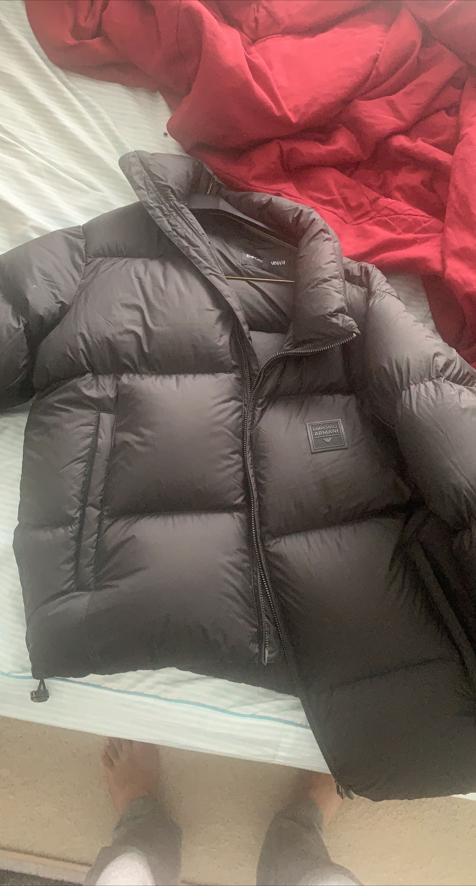 Selling a stylish black puffer jacket from Emporio Armani! It's in great condition and ready to keep you warm this winter season