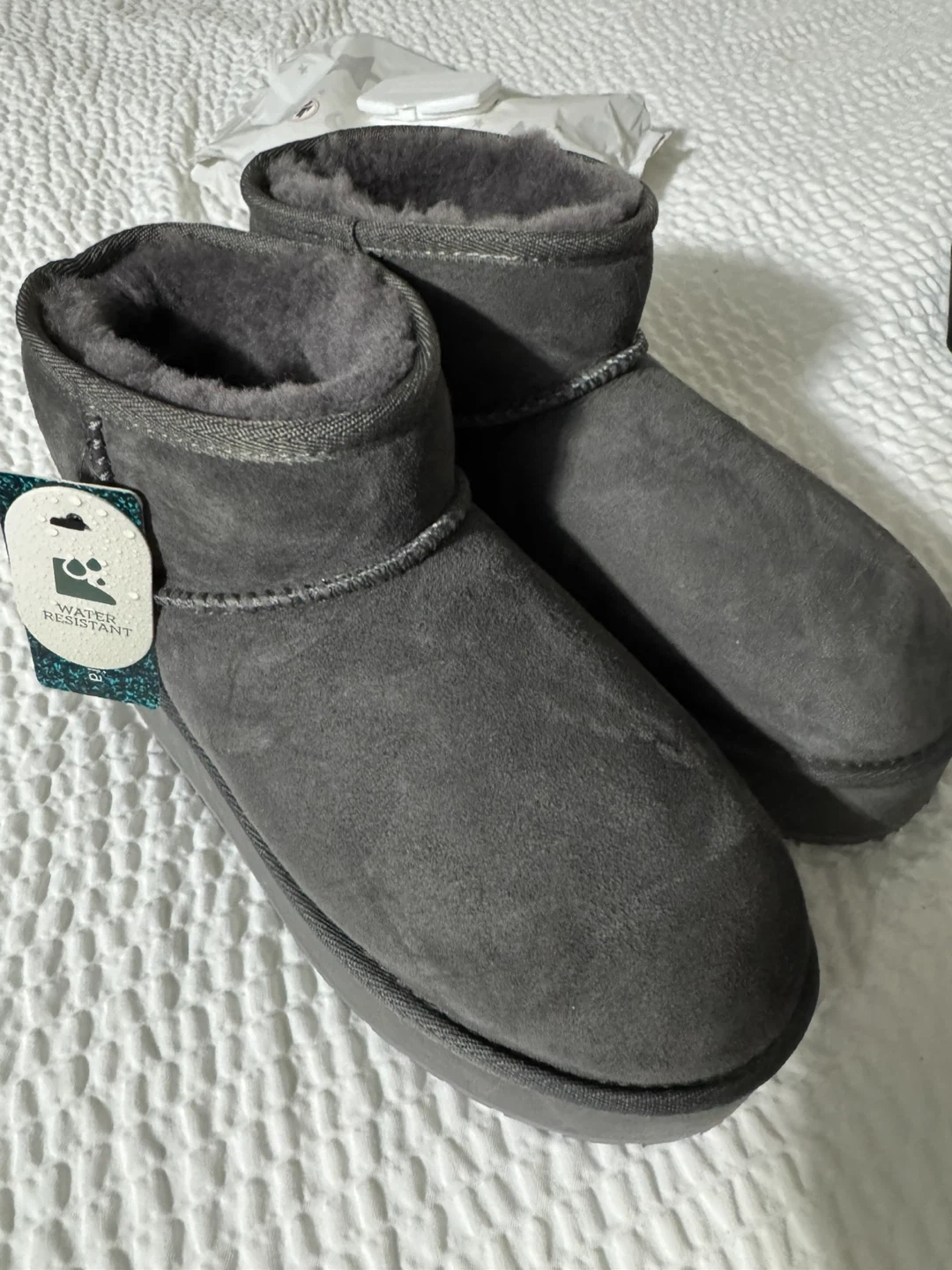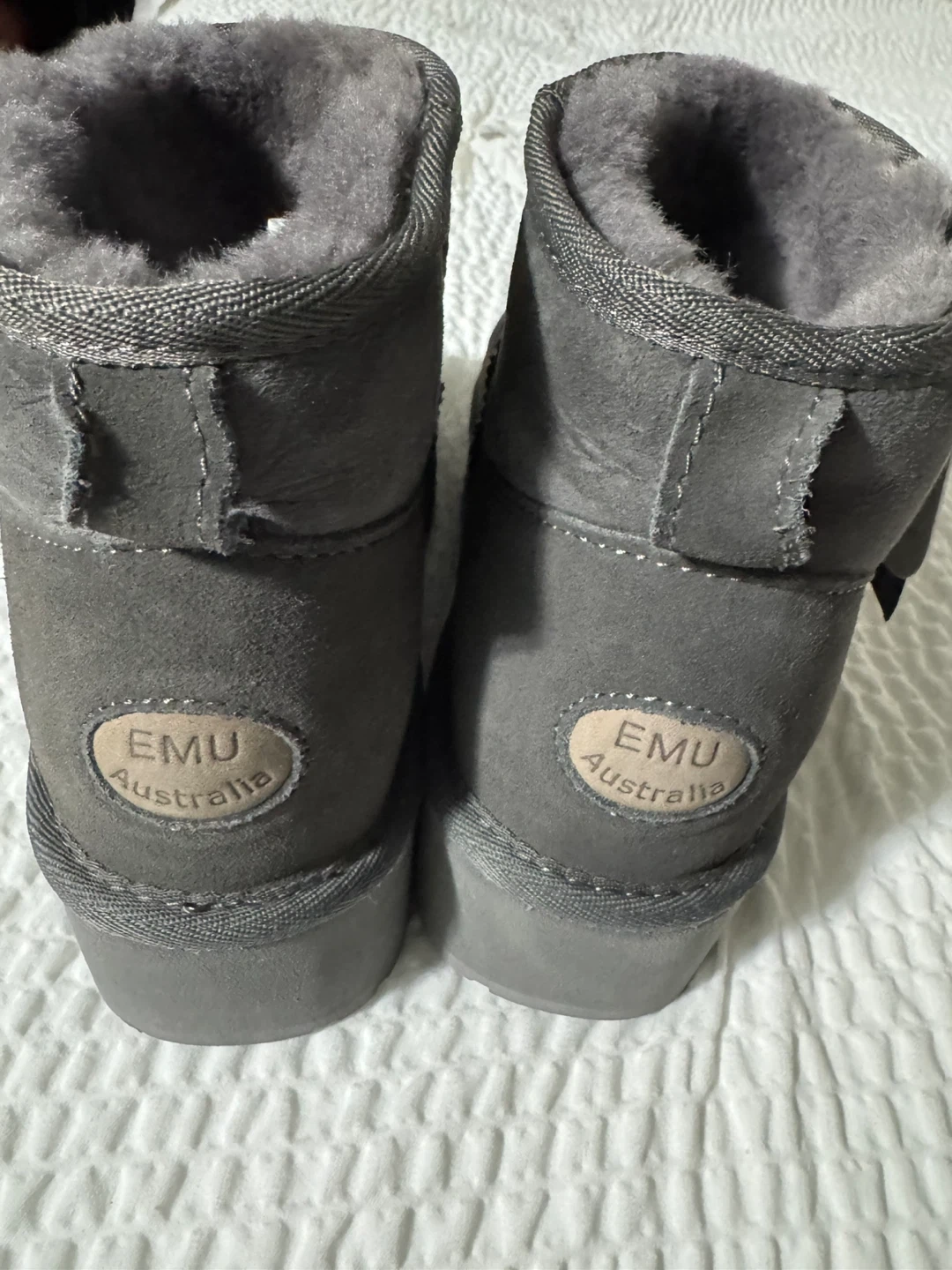 Cozy EMU Australia boots in a grey color. These are size 7 and are water resistant. They are brand new never worn as you can see but no box