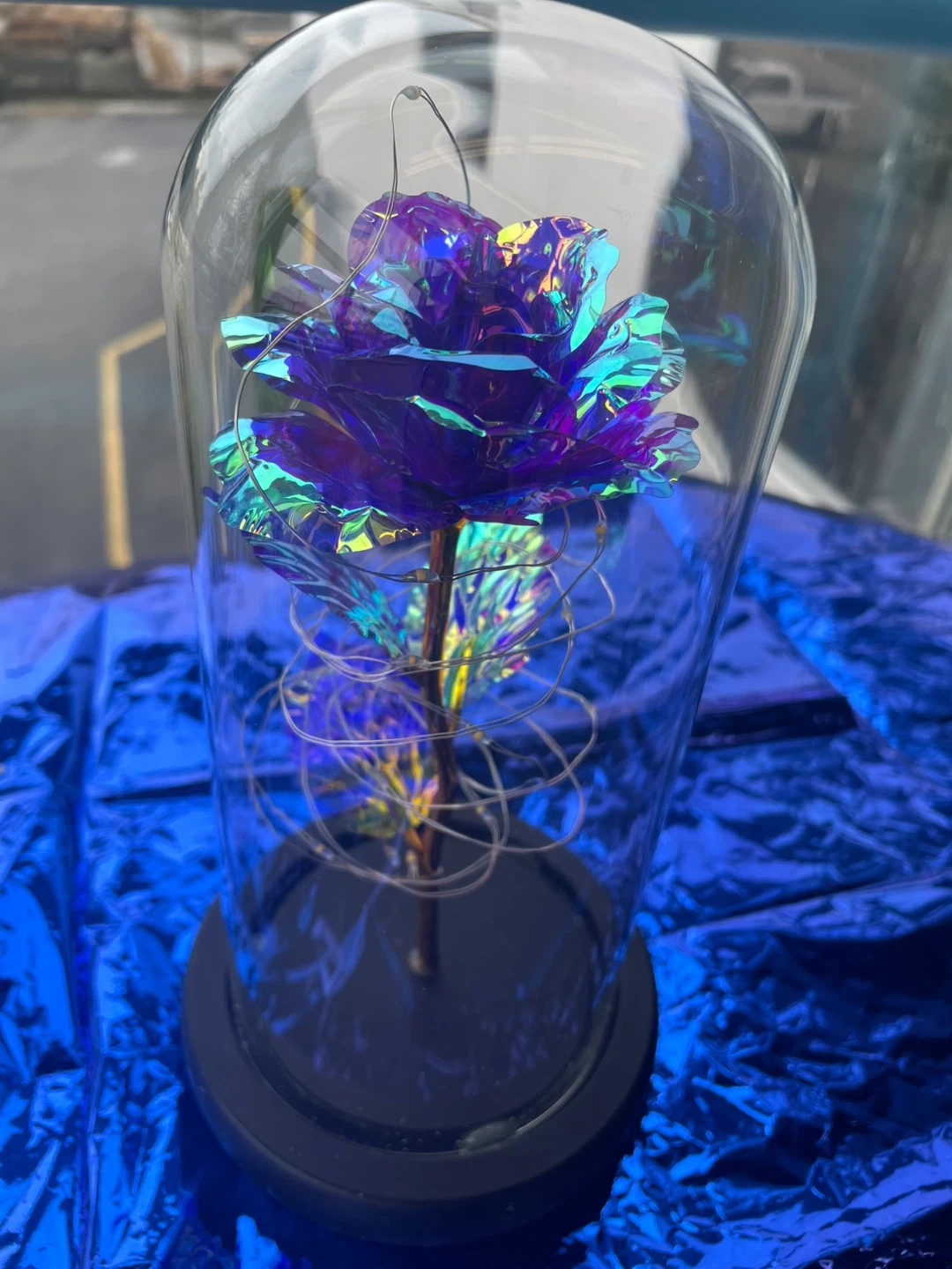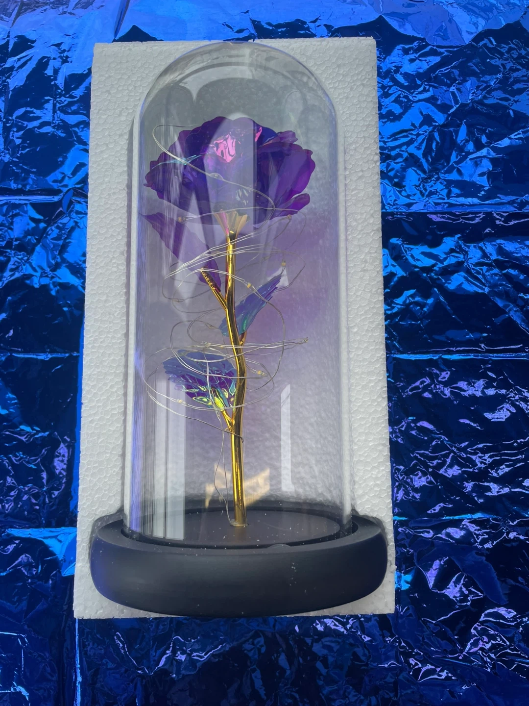 This is a beautiful enchanted rose flower lamp, encased in a glass dome. It comes in its original box, making it perfect for gifting or adding a touch of magic to your space