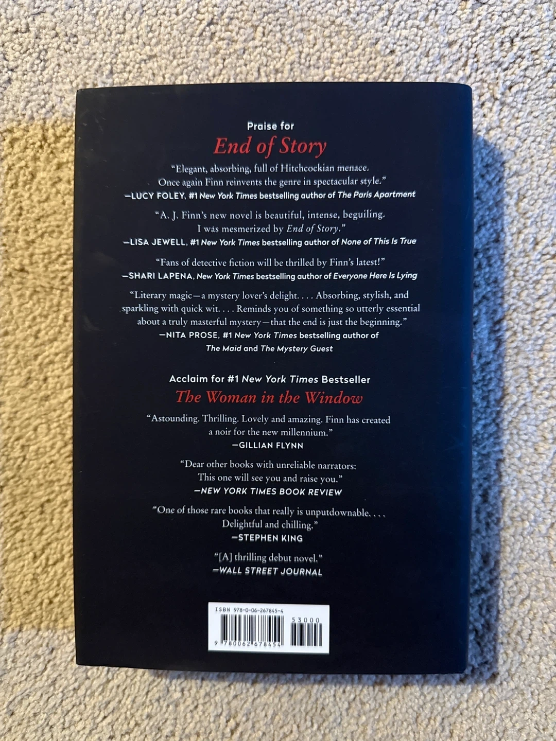 Selling the novel End of Story by A. J. Finn! It's a mystery novel by the #1 New York Times Bestselling Author of The Woman in the Window. A great read for fans of detective fiction!