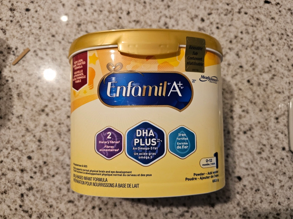 NEVER USED- SEALED ITEM Selling a can of Enfamil A+ infant formula. It contains 2 dietary fibres and DHA PLUS, an Omega 3 fat. It is iron fortified. Recommended for babies 0-12 months. Expiry Date: 2026 July 01