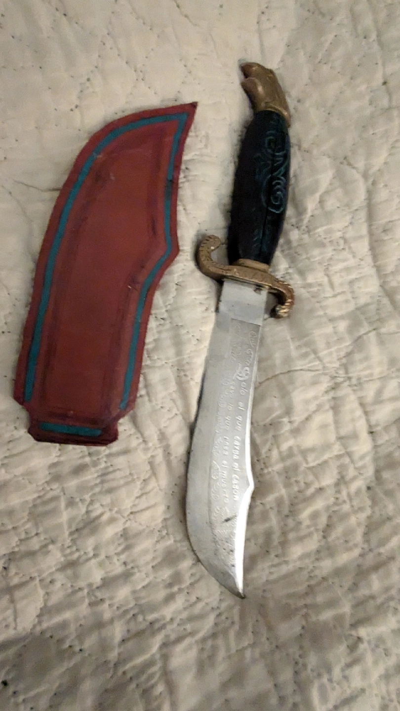 Beautiful engraved knife. Leather Case. ♥️