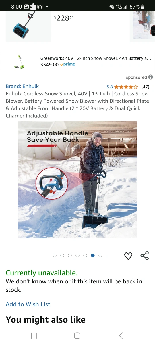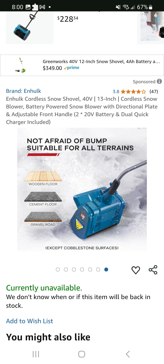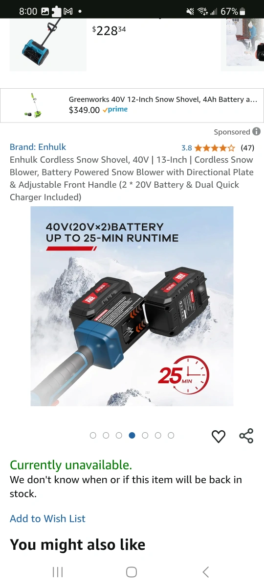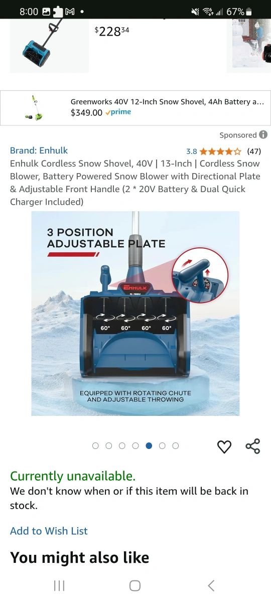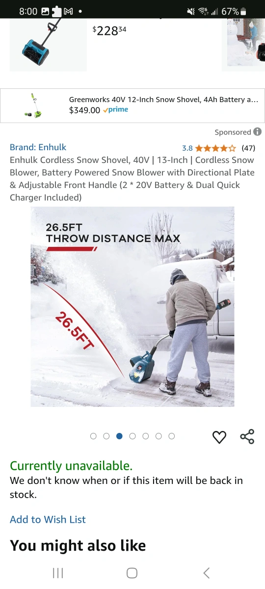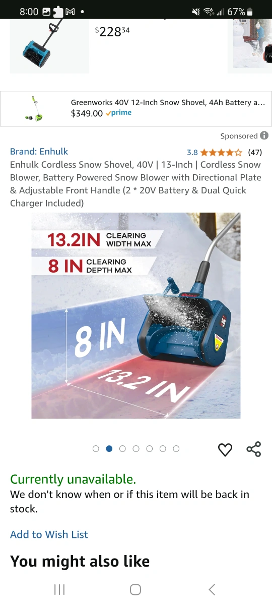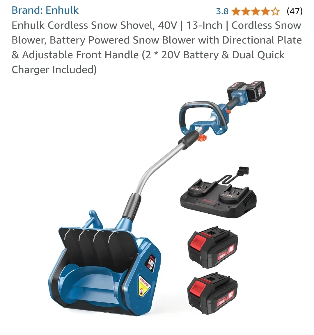Open box never used Any question let me know Brand-Enhulk Power source-Battery Powered Product Dimensions-20.3D x 33W x 20.3H Centimetres Colour-Blue Engine type-electric Ideal Snow Depth-20.3 Centimeters