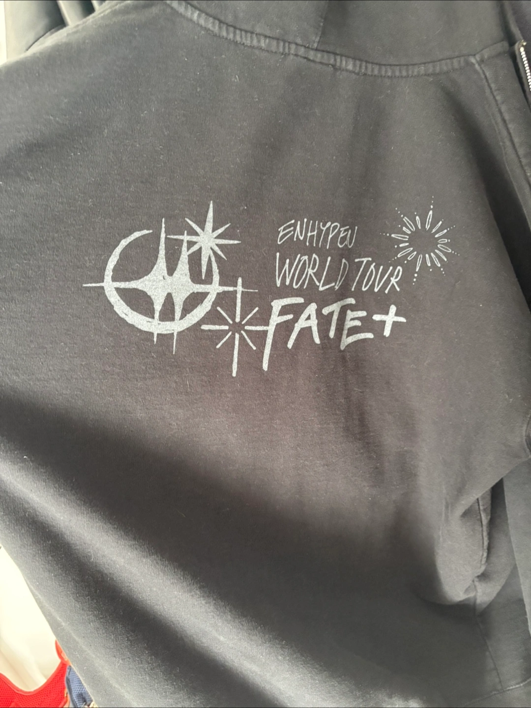 Selling an Enhypen World Tour Fate+ hoodie in black. It's a size large and in great condition. Only worn a few times, Perfect for any Enhypen fan! Pickup in Langley or meetups in surrey/langley!