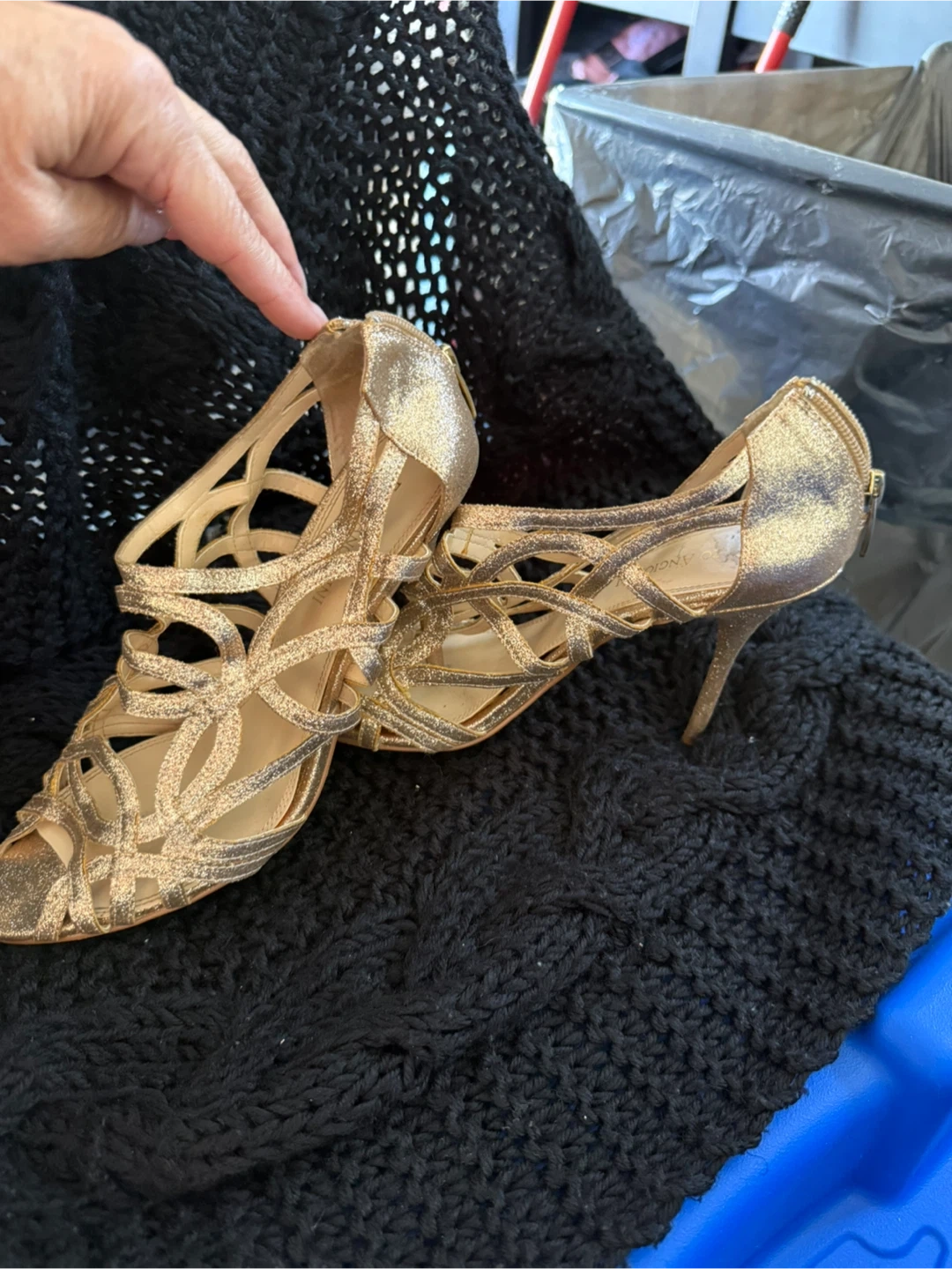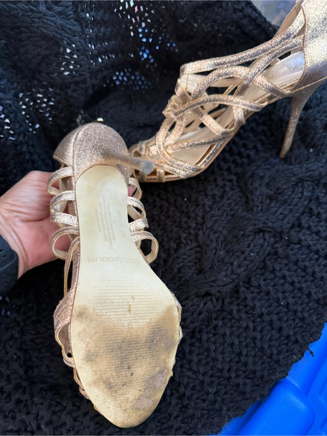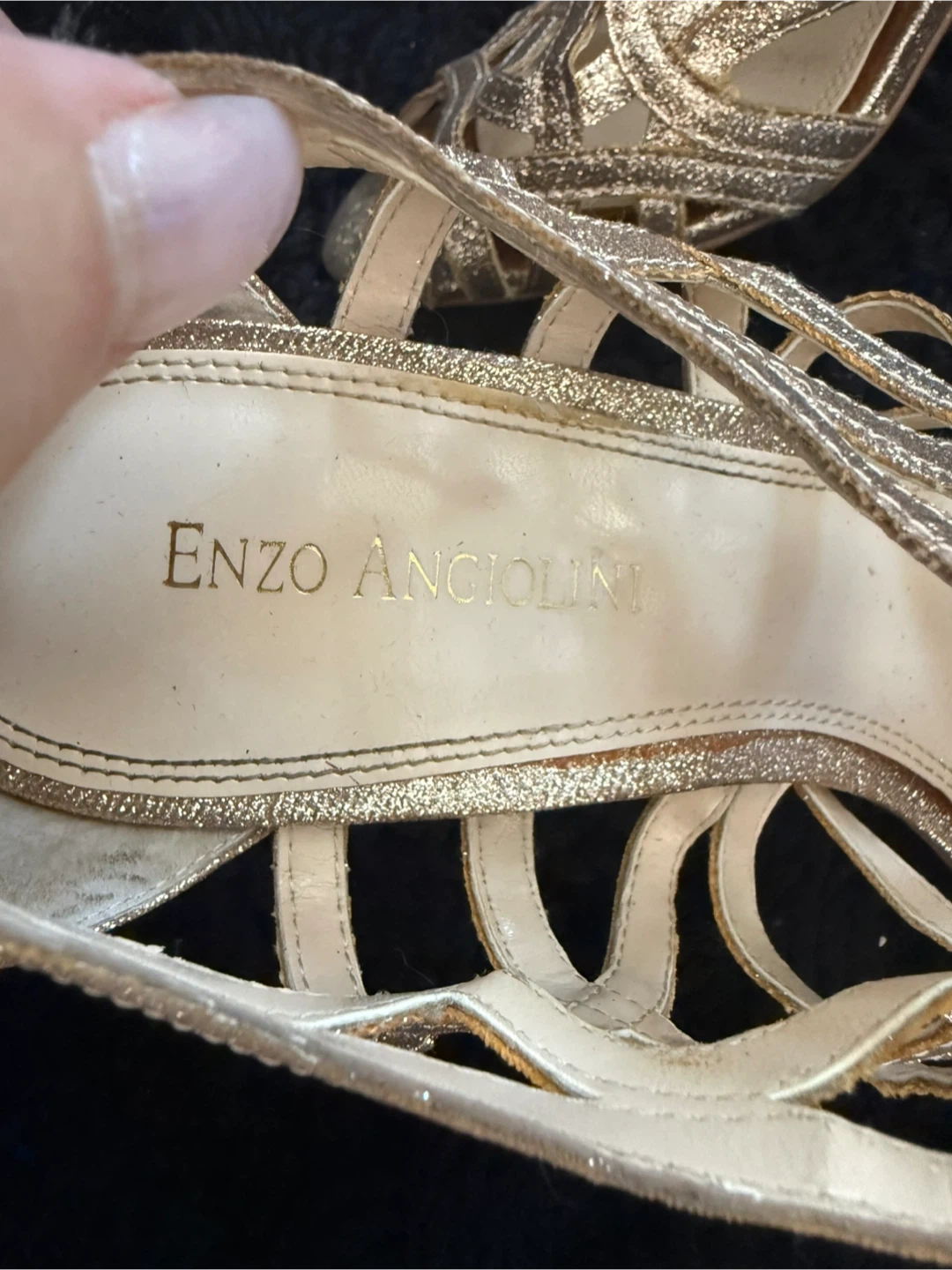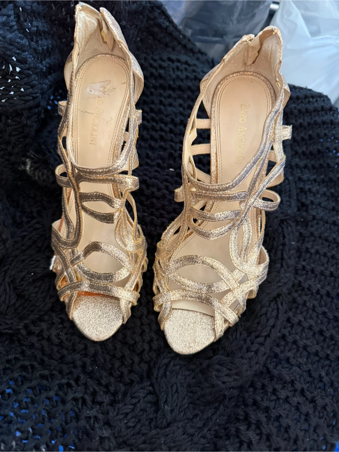 These Enzo Angiolini heels are a beautiful gold colour and size 7. They have a unique strappy design. Perfect for a night out!
