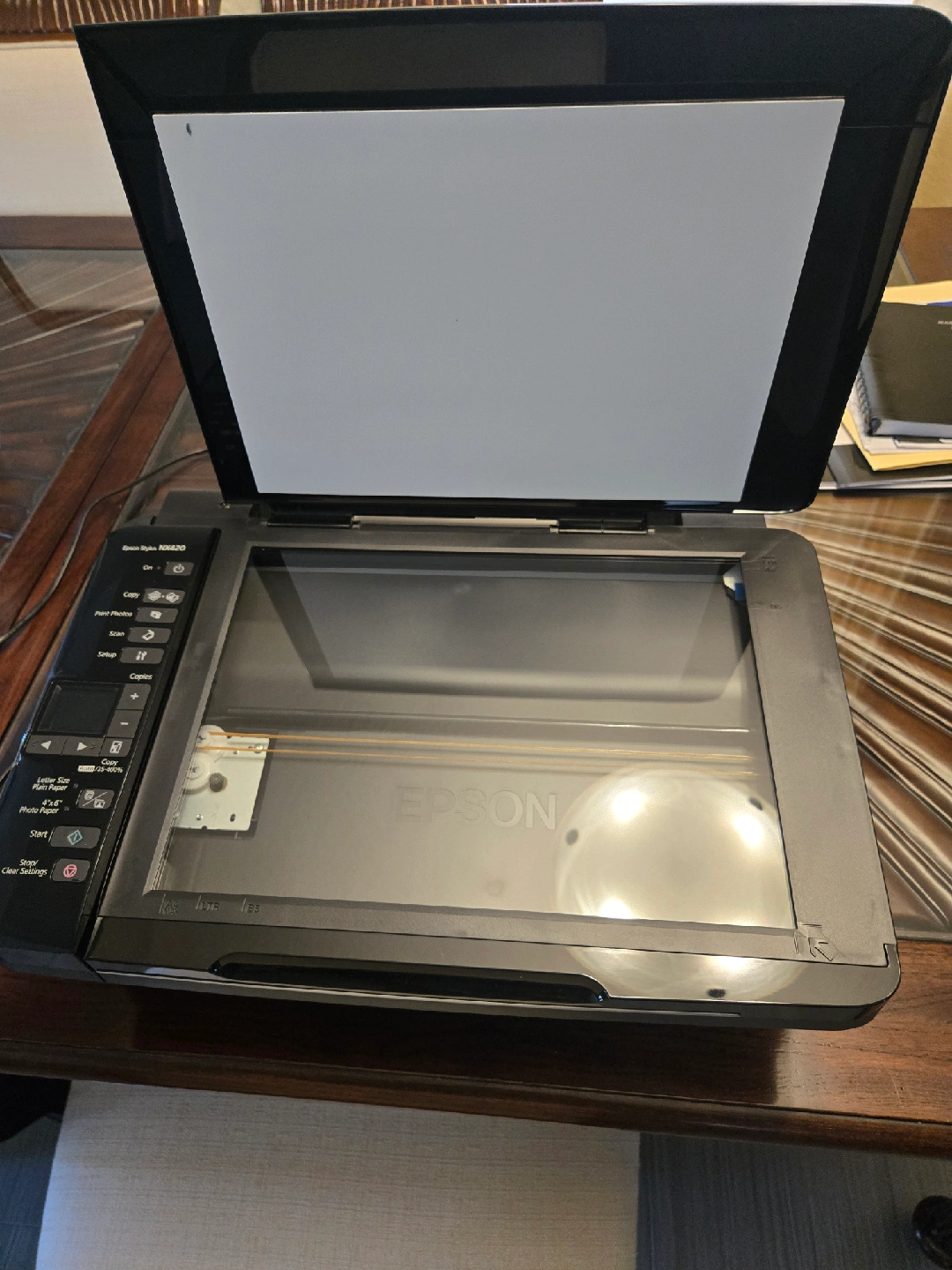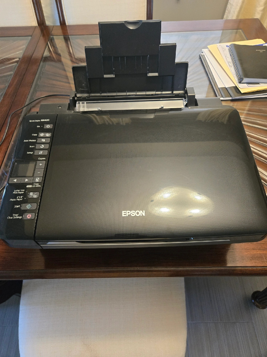 Great machine, color. Upgraded to high volume fast print machine. Great for home use and photo printing. needs ink cartridges. very clean, like new condition.