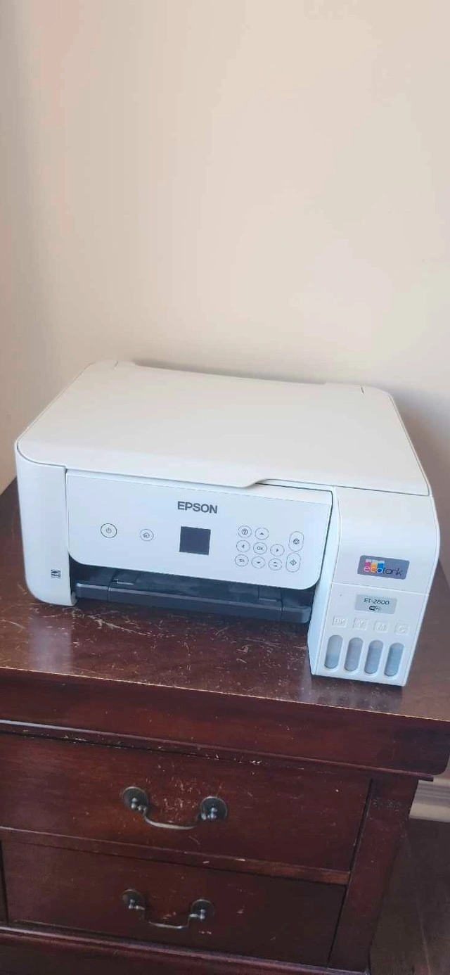 I'm selling a used Epson ET-2800 EcoTank all-in-one printer, which is known for its cartridge-free printing solution, utilizing easily refillable ink tanks. This printer delivers high-quality prints and is equipped with wireless connectivity for convenient printing from various devices. It has served me well, but I am upgrading my home office setup. Here are some details about the printer: * Print Technology: Inkjet * Functions: Print, copy, scan * Connectivity: Wi-Fi, USB * Printing Speed: Up to 10 ppm (black), 5 ppm (colour) * Resolution: Up to 5760 x 1440 dpi Given the printer's good condition, I've priced it competitively. Serious inquiries only, please.