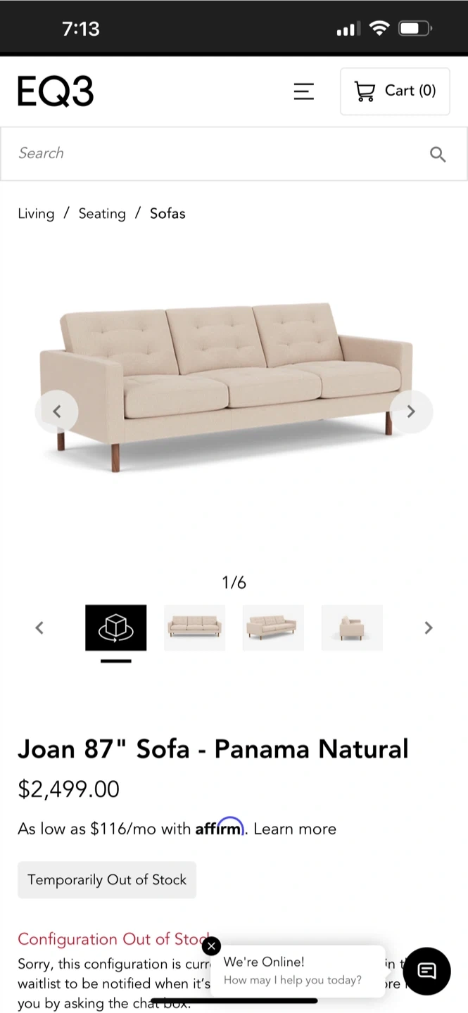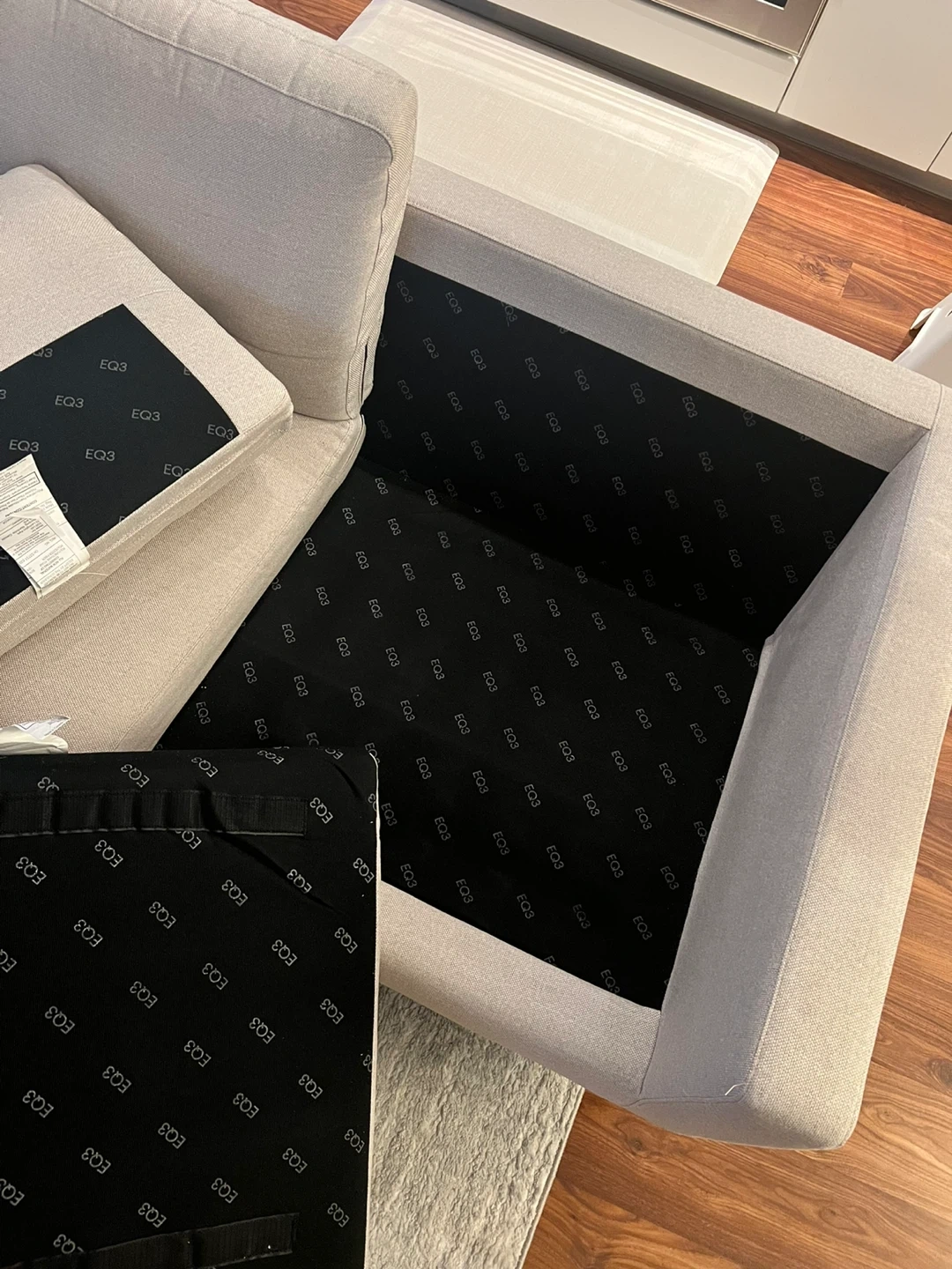 Panamá natural colour couch with walnut legs from EQ3 in a smoke free and pet free home Very well maintained and taken care of Width: 87” Depth: 34.5” or 22” Height: 32.3” This couch configuration is currently out of stock at the store but can be found here https://www.eq3.com/ca/en/product/ckxeymi1000003961yhdr9gsr/living/seating/sofas/joan-87-sofa-ready-to-ship?ckxey4noj00ok39617az7au3l=clb2n9ura029c356cmc8knipo