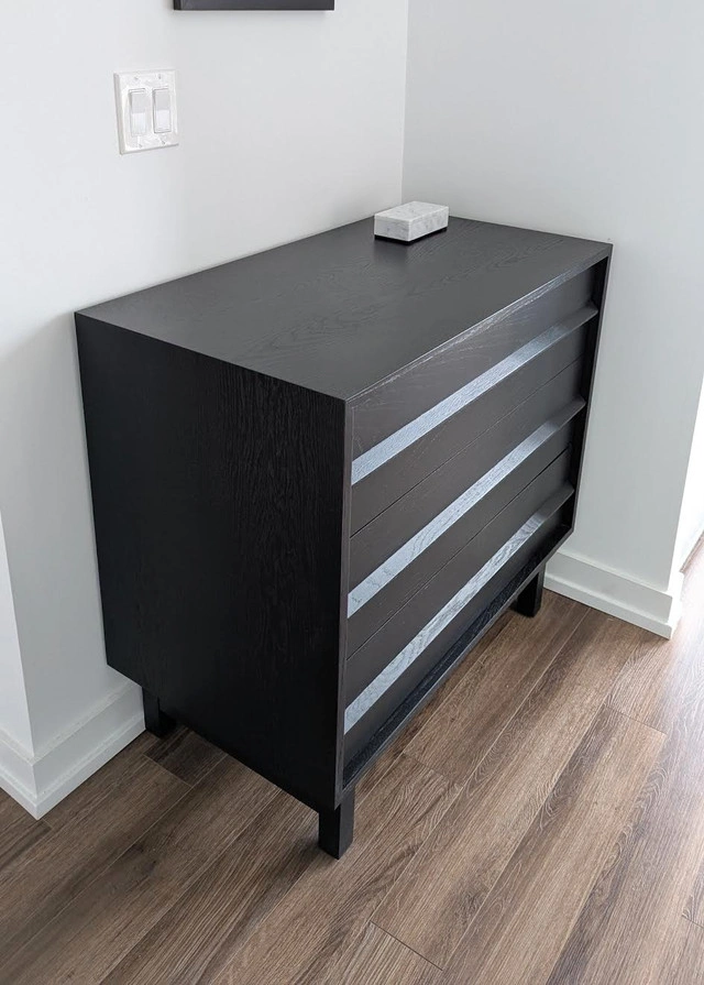 Moving and this item is no longer needed. Recent purchase. Paid 1400$ plus taxes/shipping. Still available on EQ3 website - but no longer in this colour. In pristine shape. 35″w × 19″d × 33″h. Pick up near College/Bathurst (showing a couple of photos of beige dresser for details, but this dresser is black)