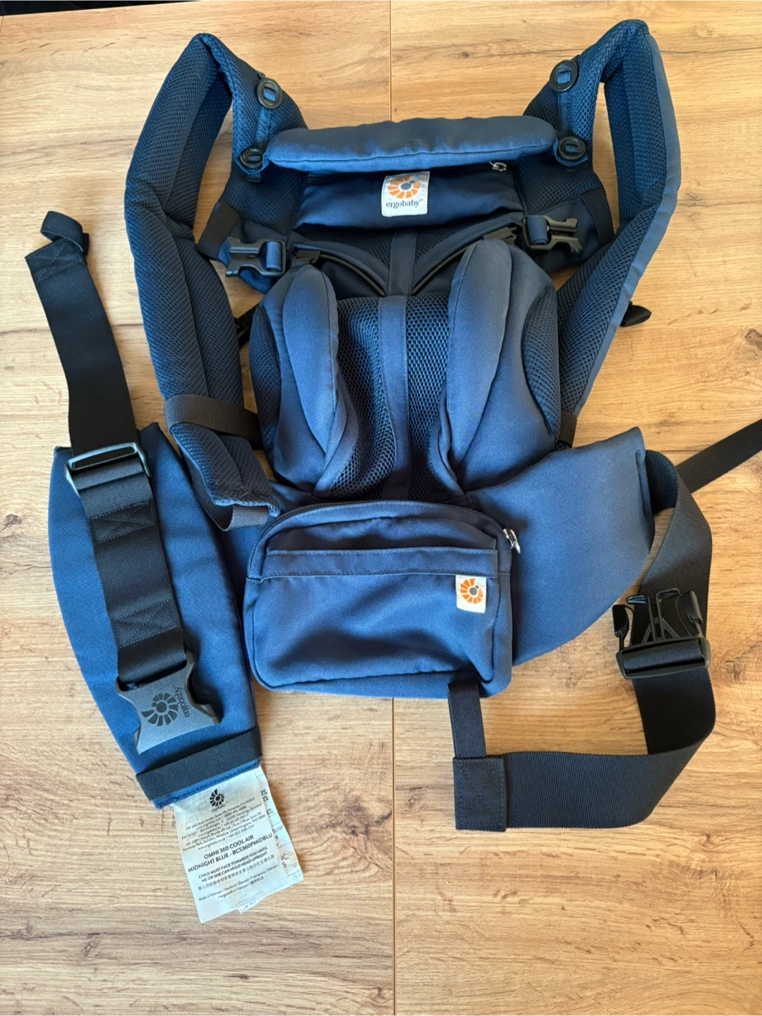 Selling a gently used Ergobaby Omni 360 Cool Air carrier in Midnight Blue! This carrier is designed to keep both you and your little one cool and comfortable. The model number is BCS360PMIDBLU. It's in great shape and ready for a new home!
