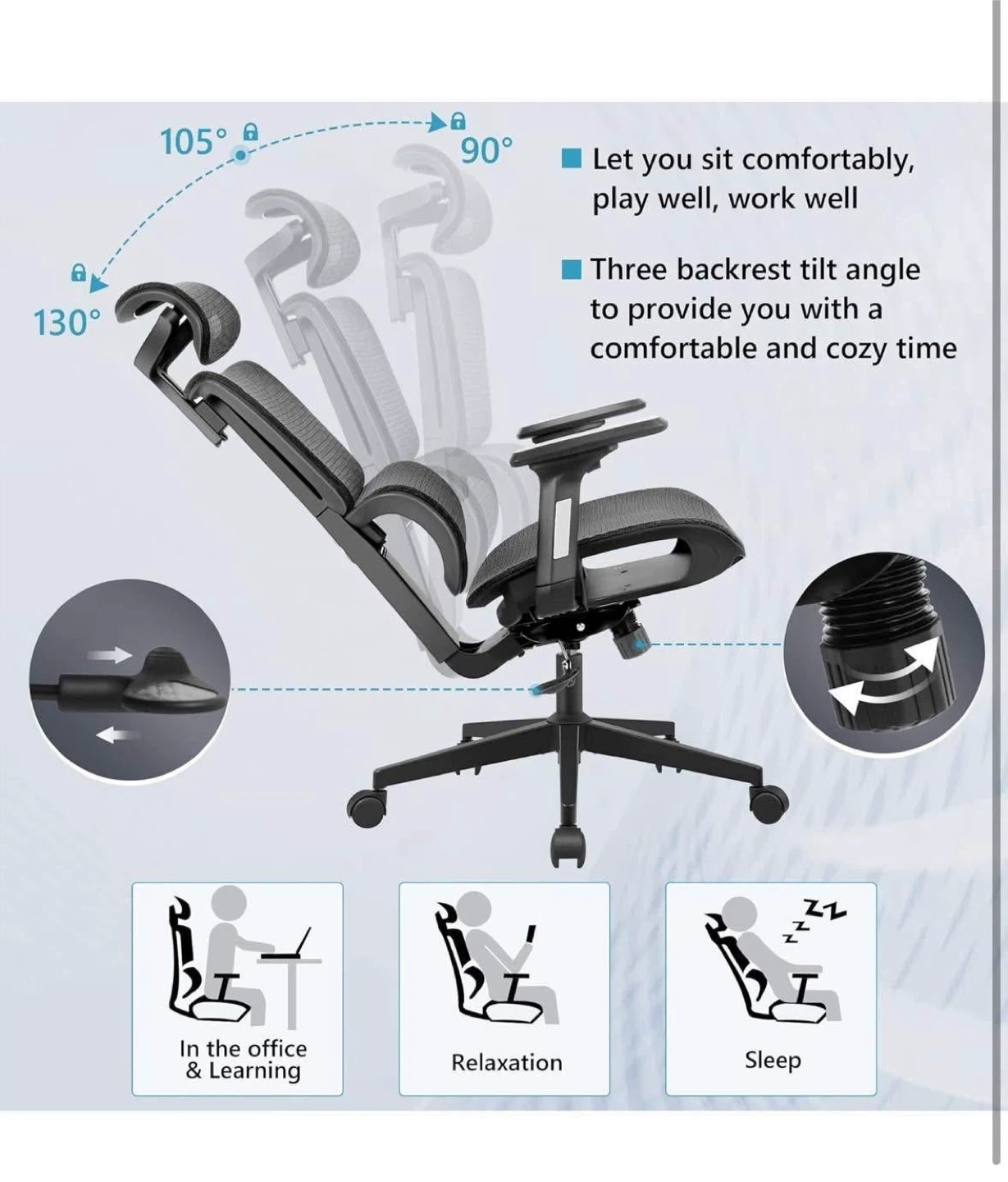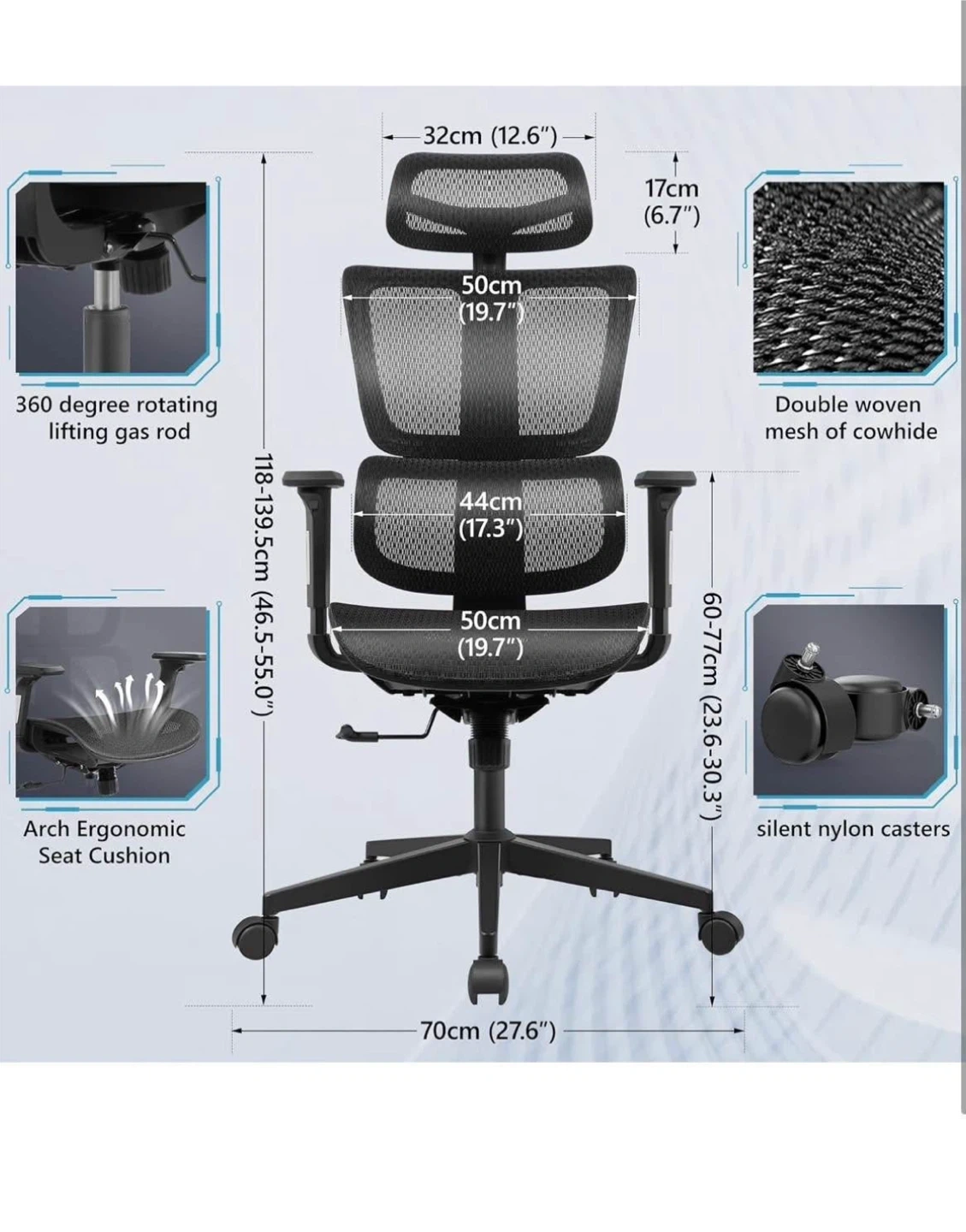 Looking to upgrade your home office? This ergonomic office chair is designed for comfort and support during long work sessions. Key features include: - 360-degree rotating lifting gas rod - Arch ergonomic seat cushion - Double woven mesh of cowhide - Silent nylon casters - Adjustable headrest and armrests