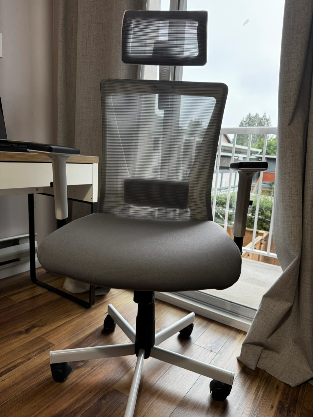 Selling a comfortable ergonomic office chair! It's in great condition and perfect for working from home or the office. The chair is grey and features a mesh back for breathability and adjustable armrests for added comfort