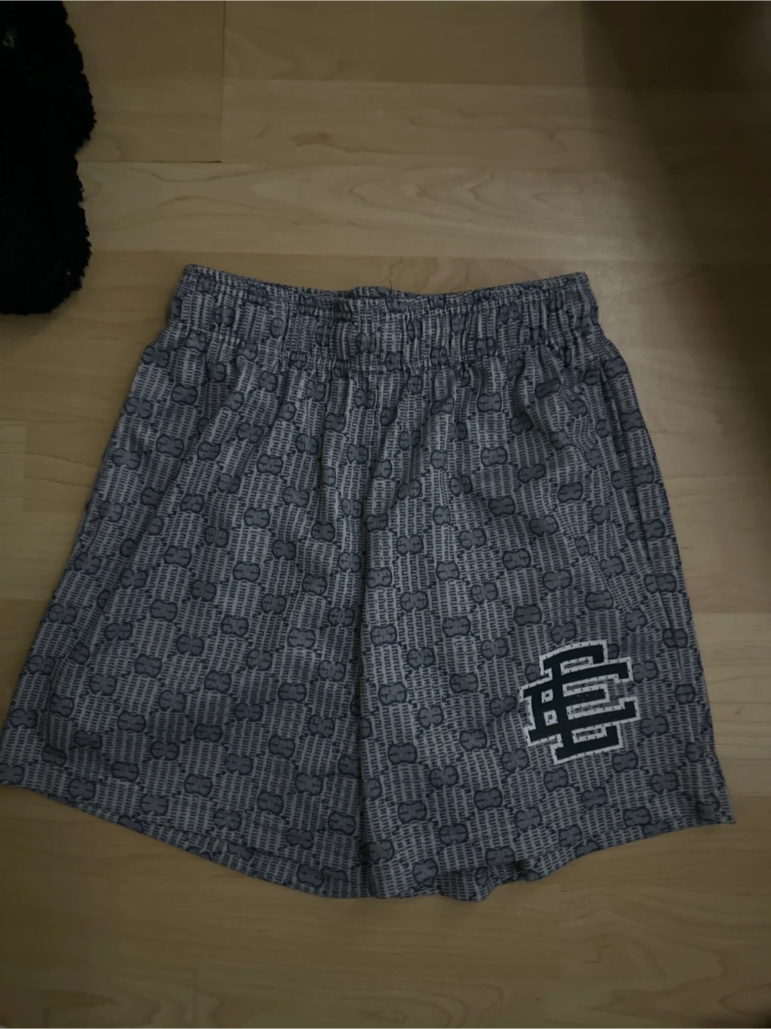 Selling a pair of Eric Emanuel EE Basic Shorts. These shorts feature a stylish pattern and the EE logo. Perfect for casual wear or sports activities!