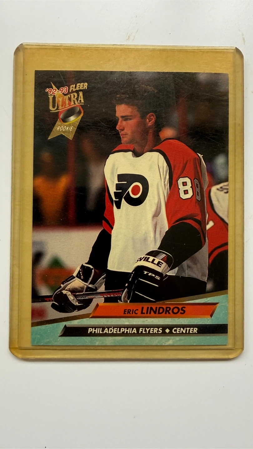 Selling an Eric Lindros hockey card from the 1992-93 Fleer Ultra Rookie series. It features Lindros as a Philadelphia Flyers center. A great addition for any hockey card collector!