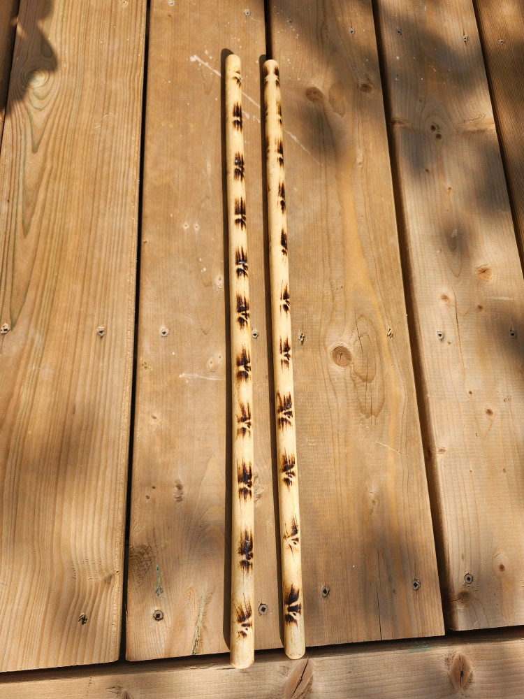 Selling a pair of eskrima sticks! They have a unique burned design and are in great condition. Perfect for training or practice.