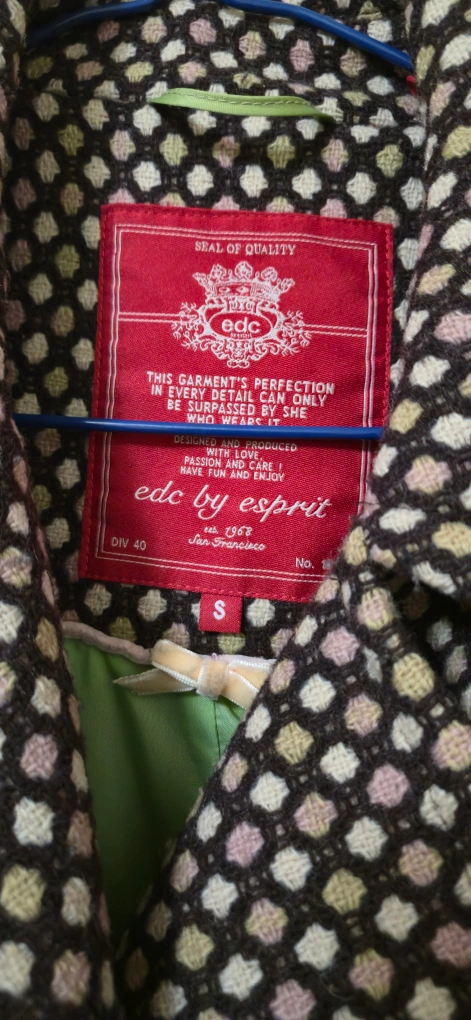 Here's a stylish Esprit coat. It's in great shape and ready for a new home! The coat features a unique pointelle pattern and a flattering silhouette. It's perfect for adding a touch of elegance to any outfit