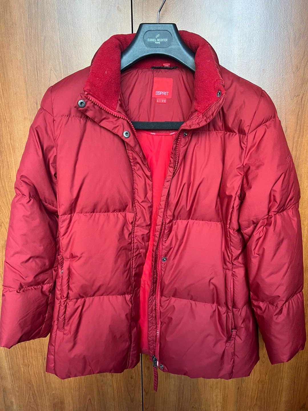 Here's a unisex red puffer jacket from Esprit. It's in great condition and ready to keep you warm. Perfect for those chilly Canadian days.