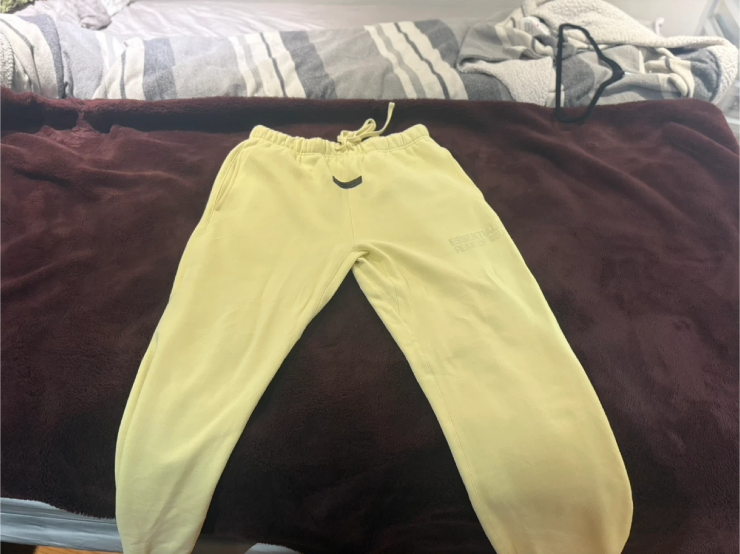 Authentic pair of Essentials Fear of God sweatpants in a soft yellow colour. These are super comfy and in great condition. Perfect for lounging or running errands! Never worn once. Price is firm.