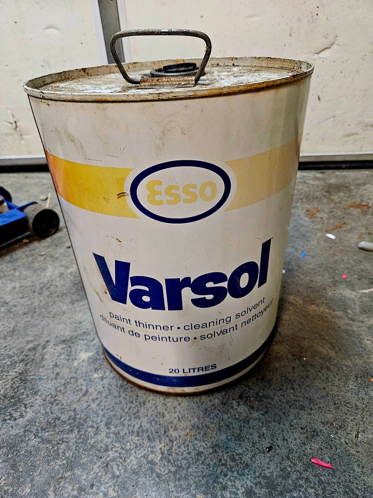 Selling a 20-litre can of Esso Varsol. It's a paint thinner and cleaning solvent.