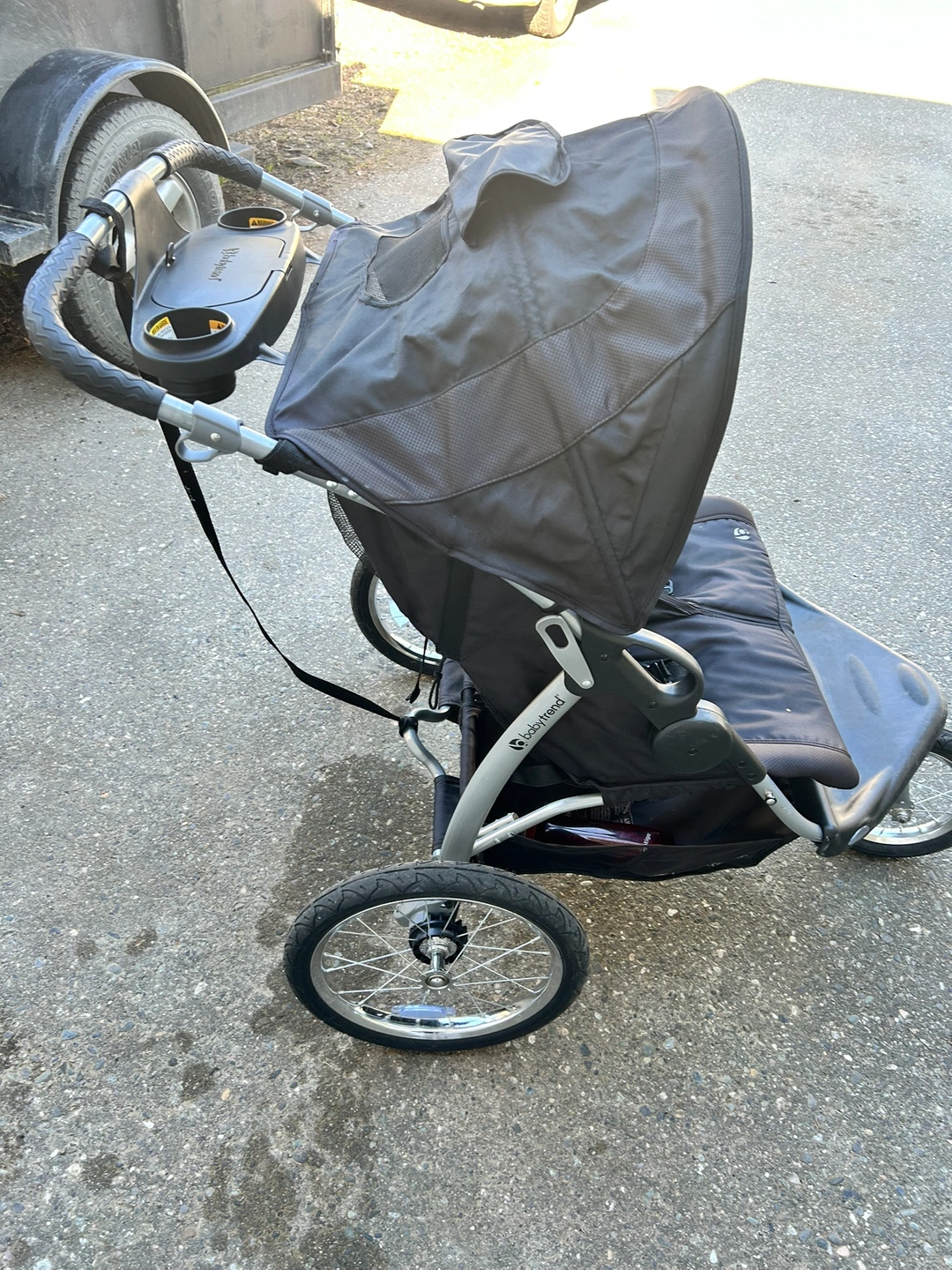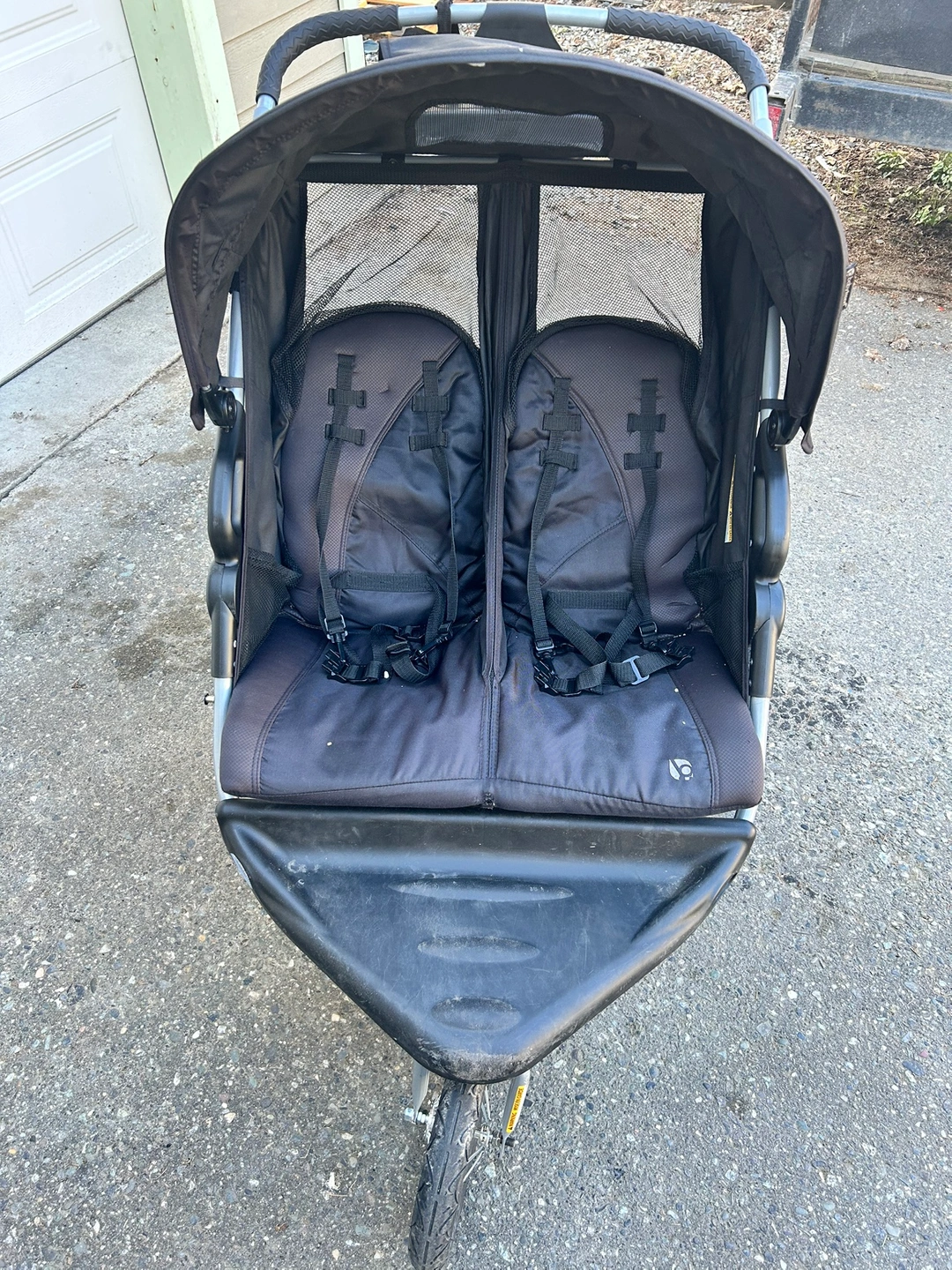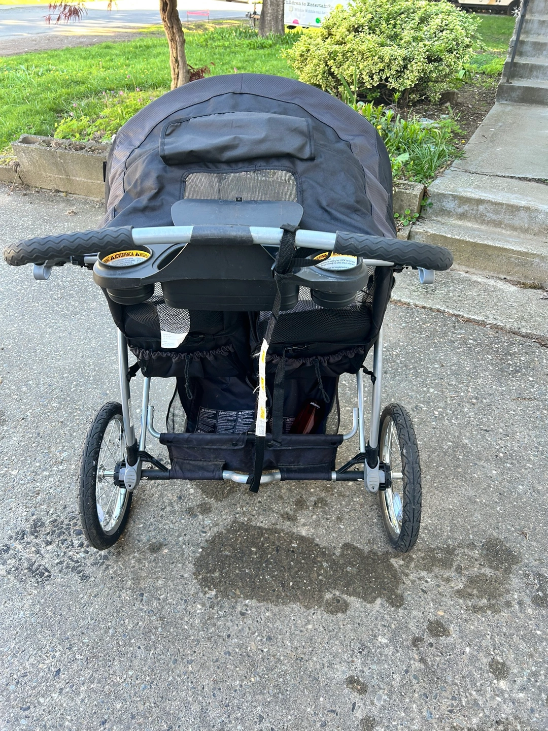 Excellent condition double jogger stroller Comes with free all weather stroller cover in perfect condition no rips no tares!