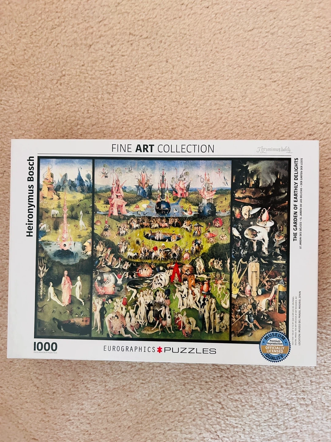 1000-piece puzzle from Eurographics featuring Hieronymus Bosch's "The Garden of Earthly Delights" from the Fine Art Collection! It's officially licensed and a premium reproduction from the Museo del Prado in Madrid