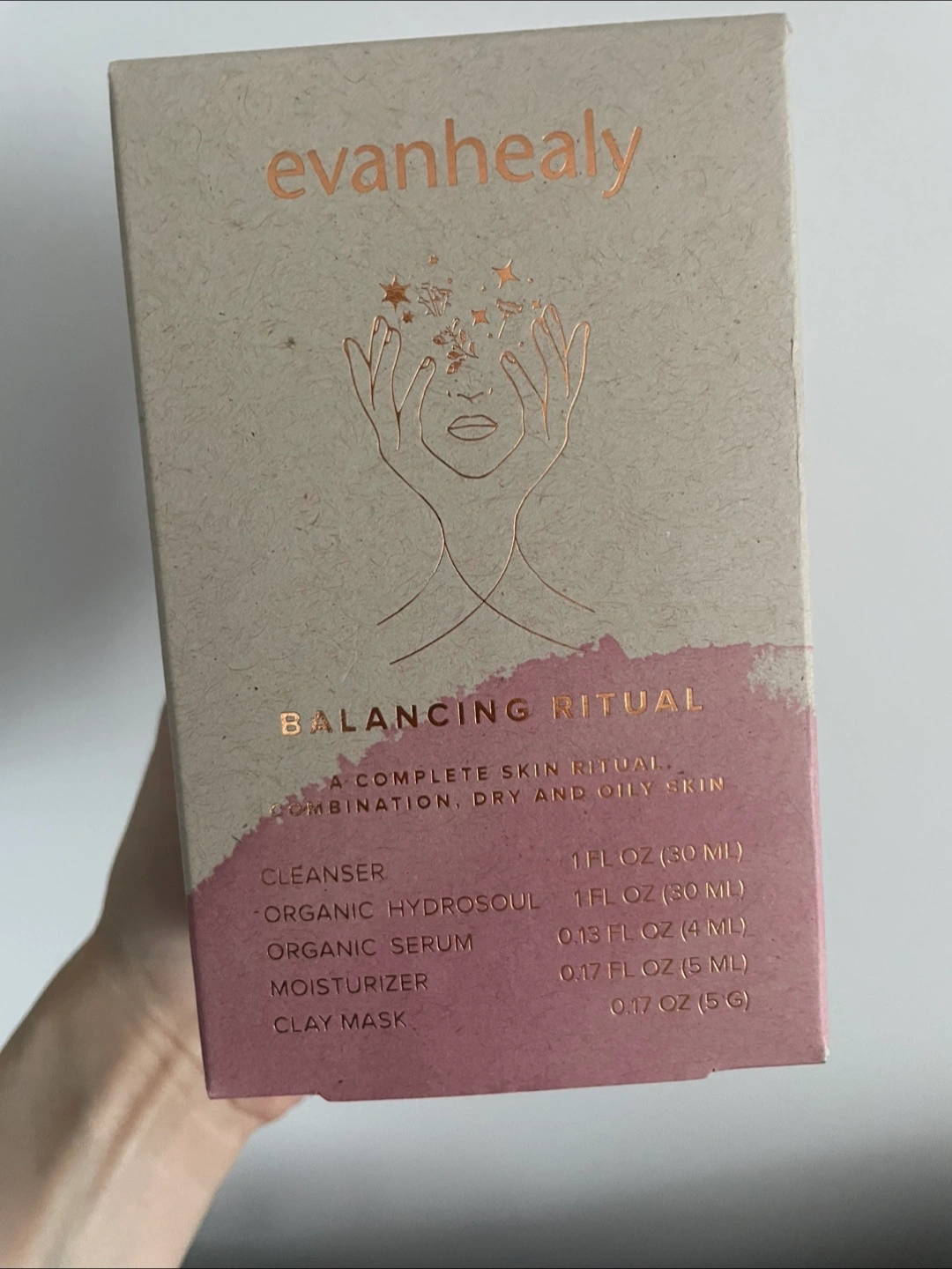 New, unopened evanhealy Balancing Ritual set. Includes MINI cleanser, hydrosol, serum, moisturizer, and clay mask. Perfect for combination, dry and oily skin.