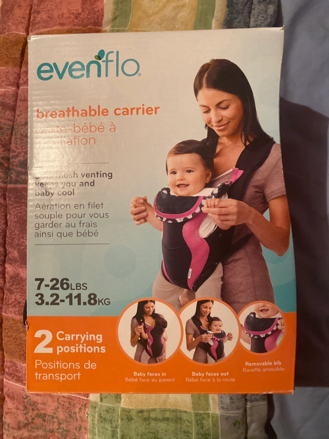 A baby carrier with a breathable design. Features mesh venting to keep you and your baby cool. Offers two carrying positions. A perfect item for taking your baby out for a relaxing walk. Pickup in Wasaga Beach