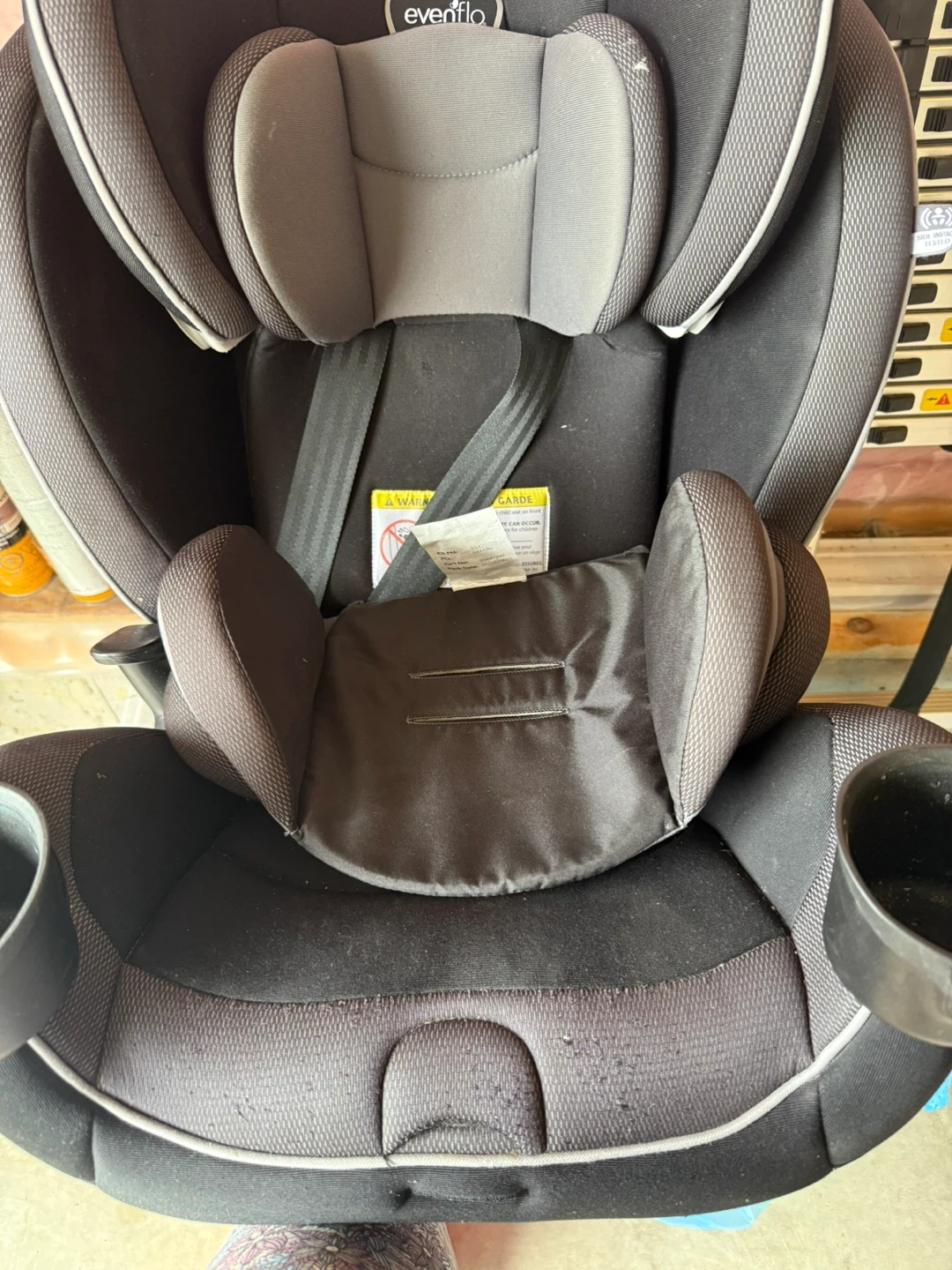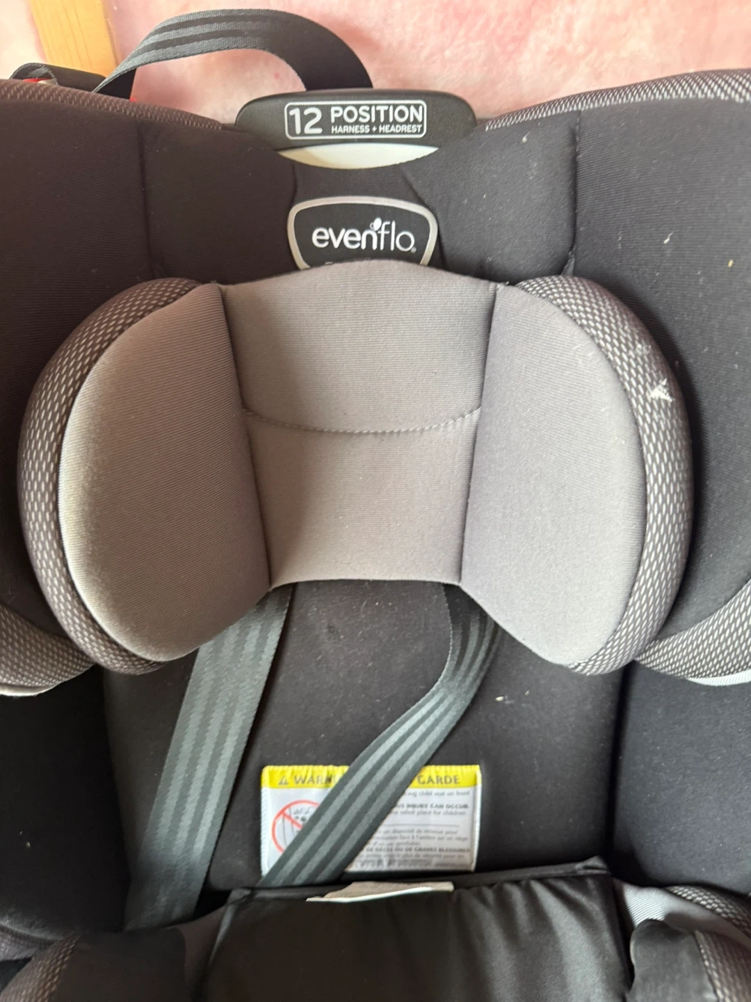 Selling an Evenflo car seat that's in great shape. It features a 12-position harness and headrest for a customizable fit as your child grows. Perfect for keeping your little one safe and comfy on the road!