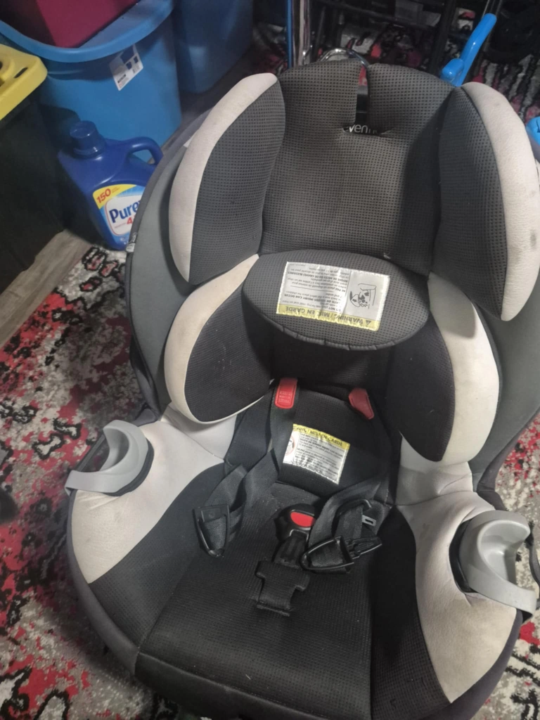 Selling an Evenflo car seat that's in great shape! It's black and grey, and ready for a new home. Perfect for keeping your little one safe and comfy on the road