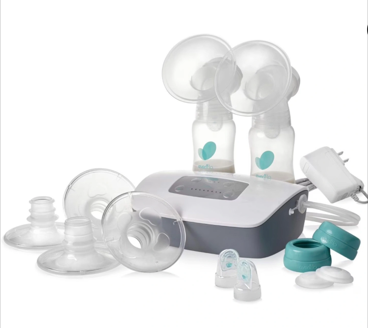 I'm selling an Evenflo double electric breast pump! It comes with all the parts you see in the picture, including the bottles, flanges, and power adapter. It's in great condition and ready for a new home!