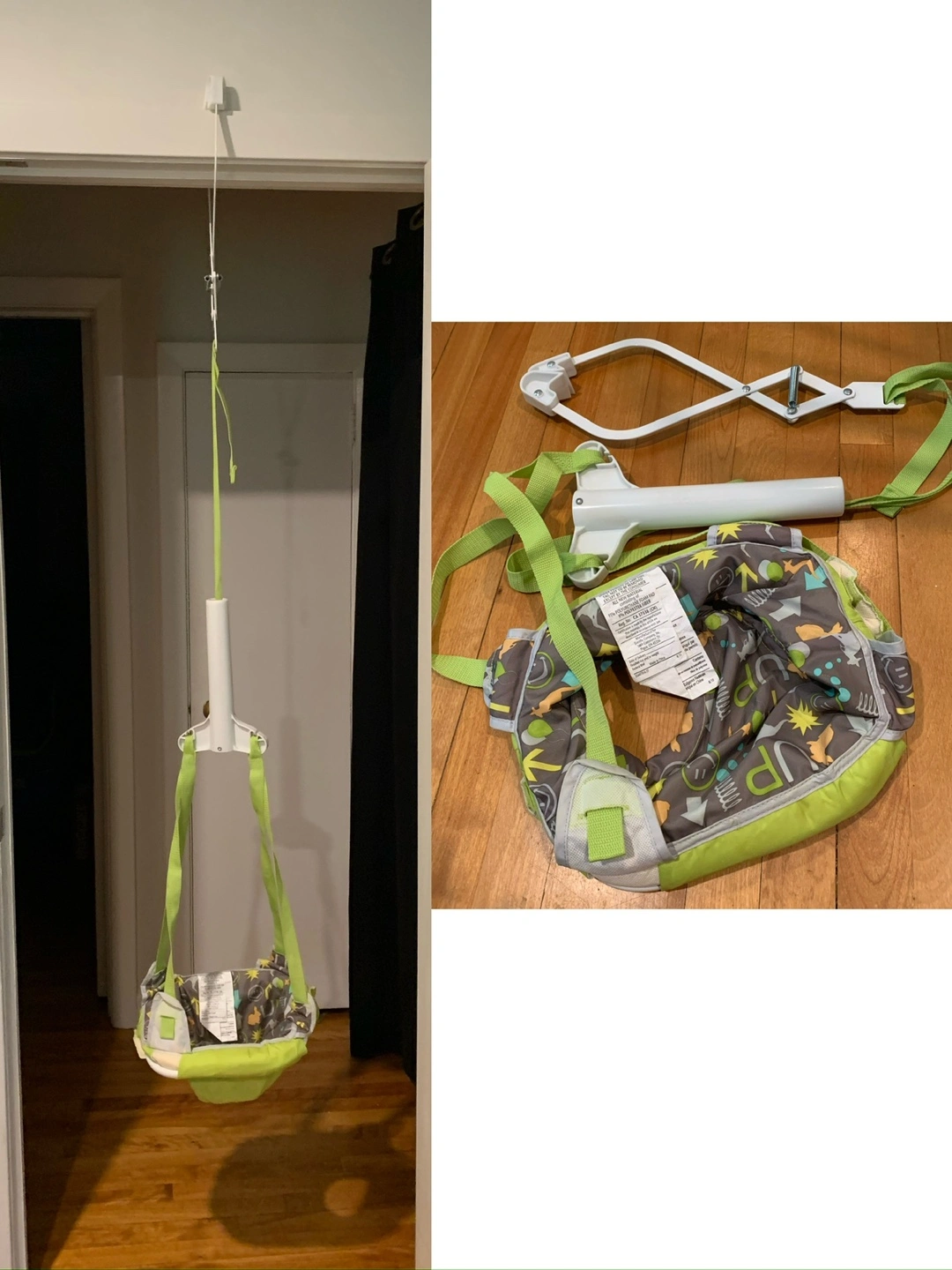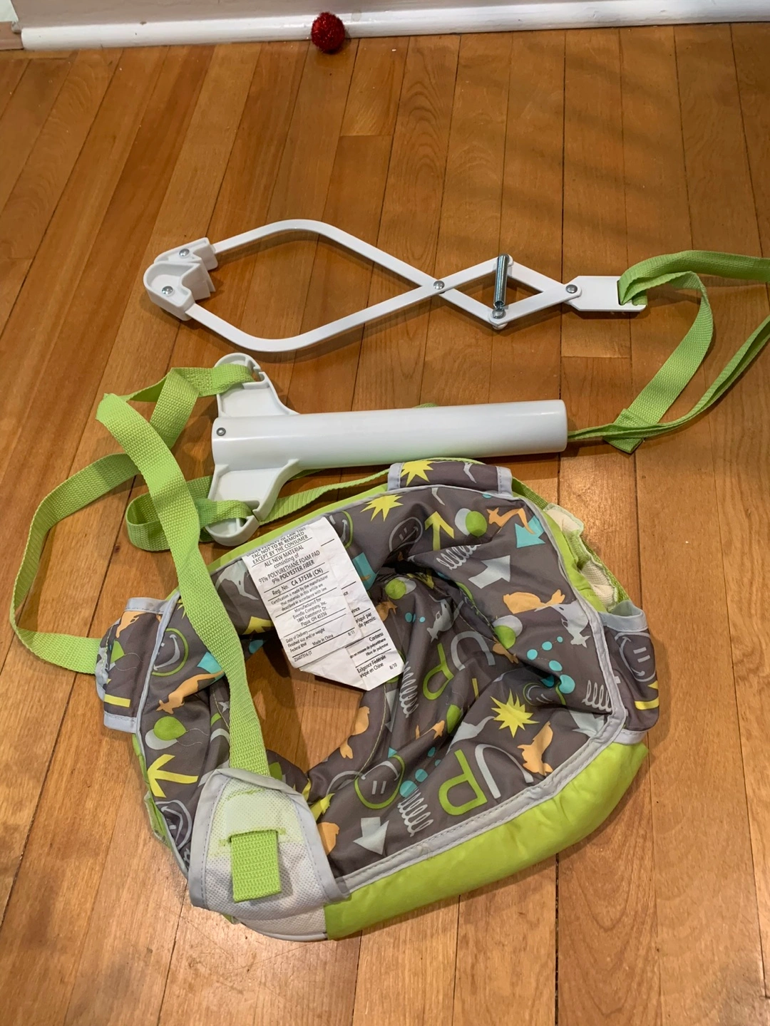 Selling an Evenflo Jump & Learn Jumper in great condition! This jumper is perfect for little ones who love to bounce and play. It's designed to provide a safe and fun environment for babies to develop their motor skills. Recommended age range is for babies who can hold their head up unassisted. Comes with all components shown in the pictures!