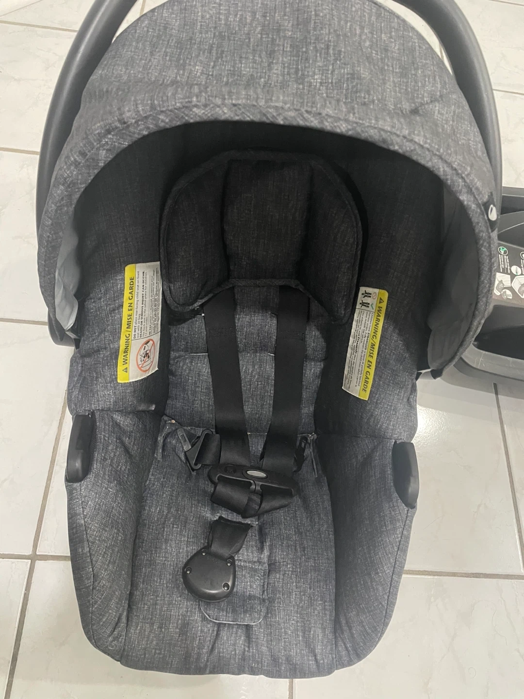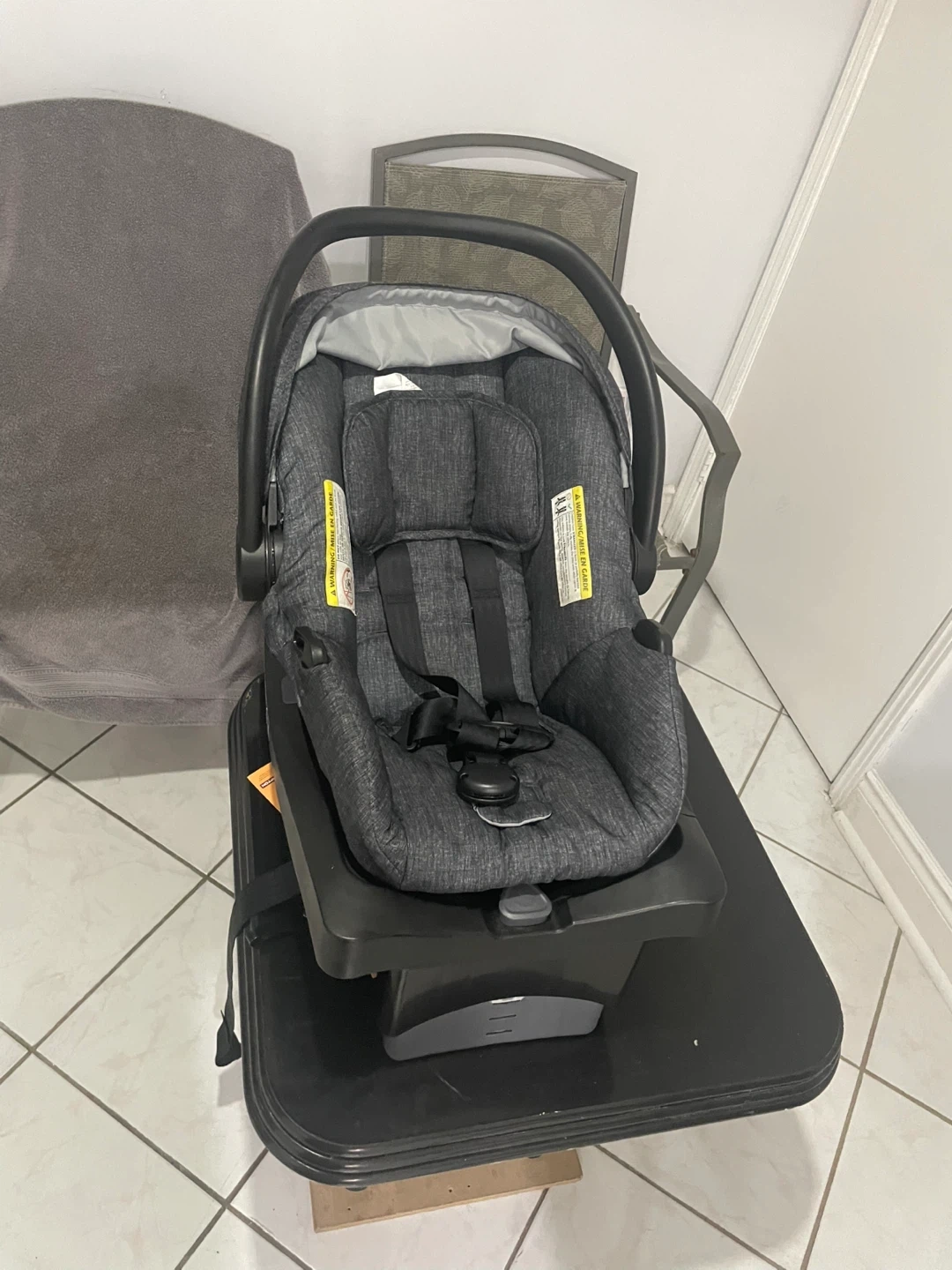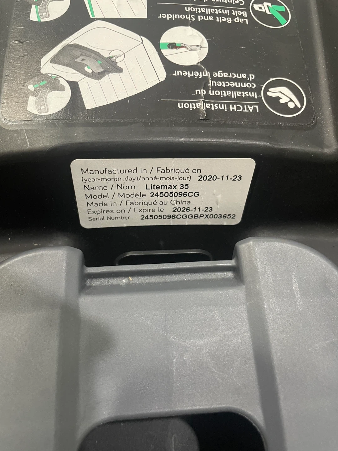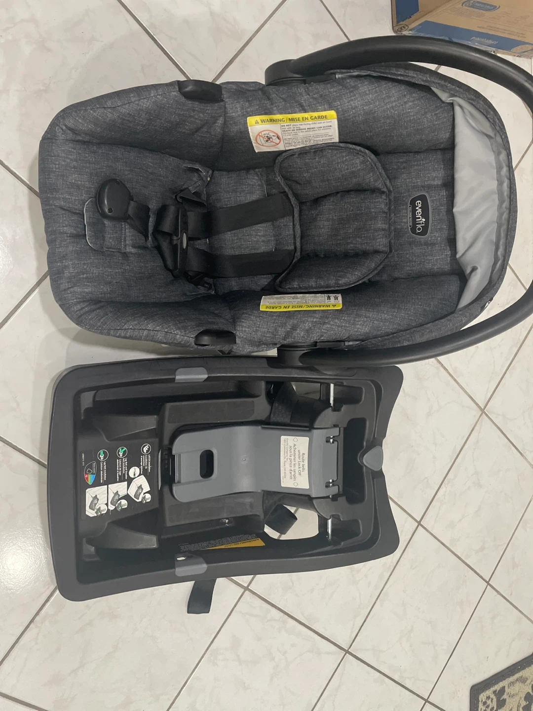Selling an Evenflo LiteMax 35 infant car seat. This car seat comes with its base for easy installation. The manufacture date is 2020 November 23 and the expiration date is 2026 November 23.