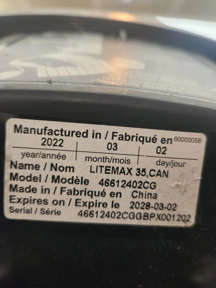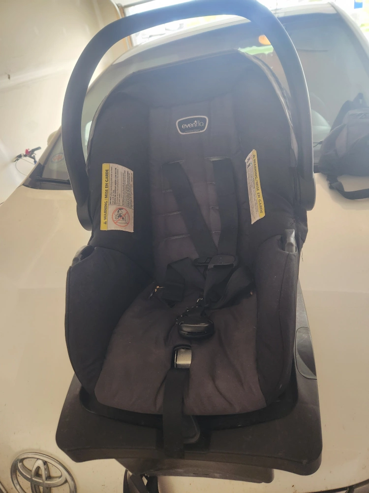 Selling an Evenflo Litemax 35 infant car seat with base. The manufacturing date is 2022 March 02 and it expires on 2028 March 02. It's in good condition