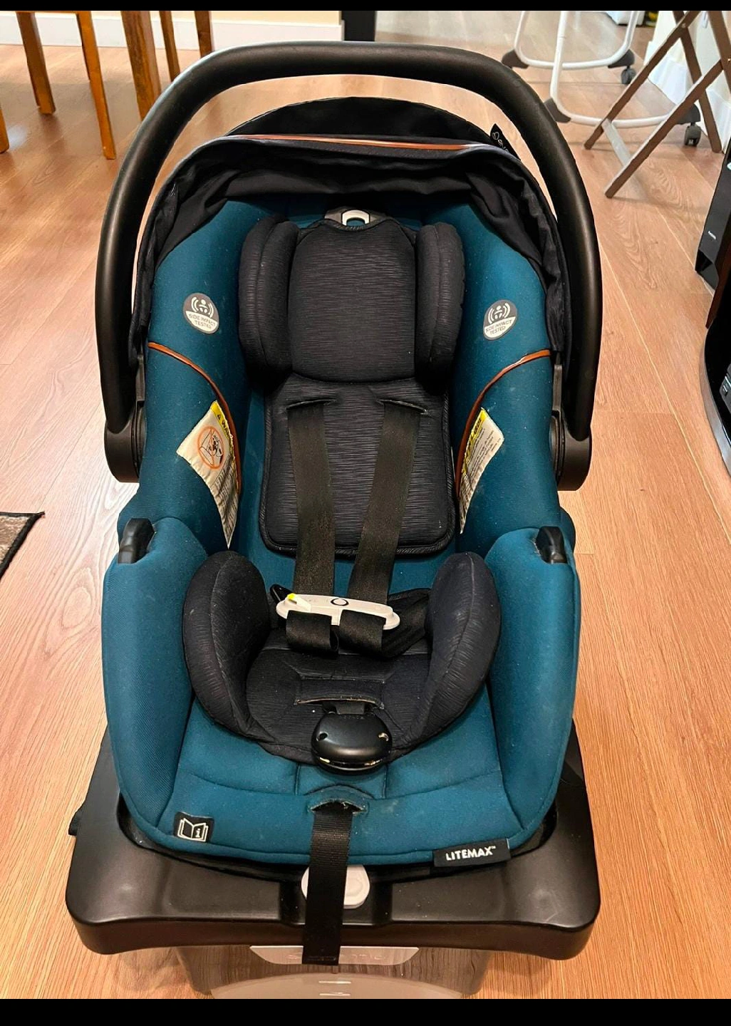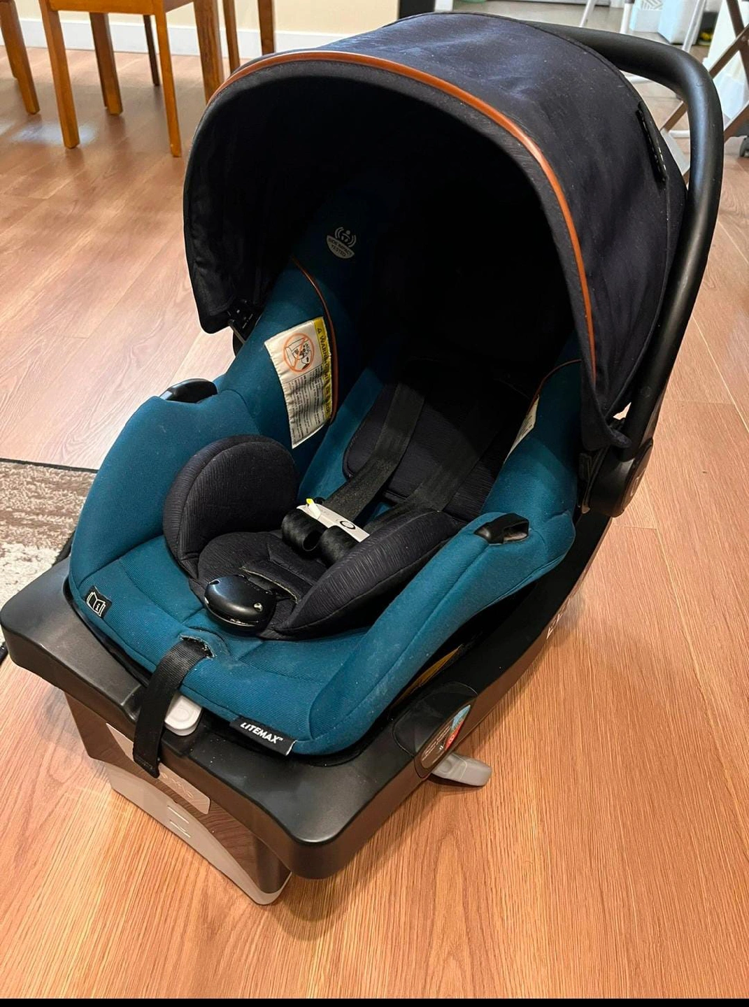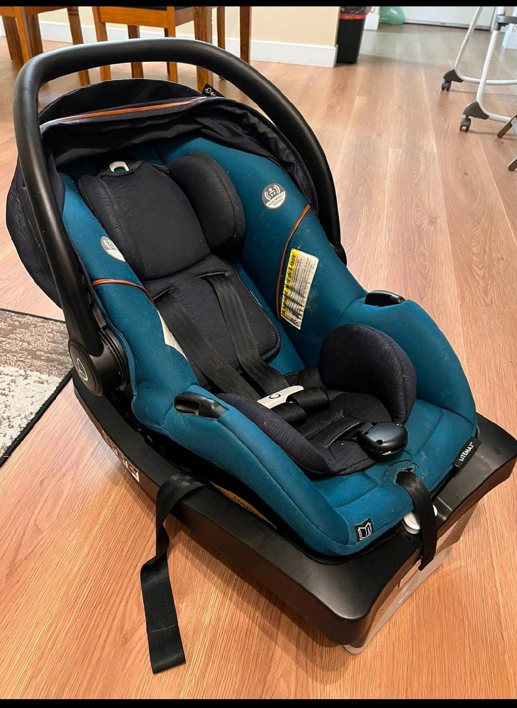 Selling an Evenflo LiteMax Canada Gold infant car seat. The manufacturing date is 2021 March 26 and the expiry date is 2027 March 26. It's in great shape and ready for a new little one!