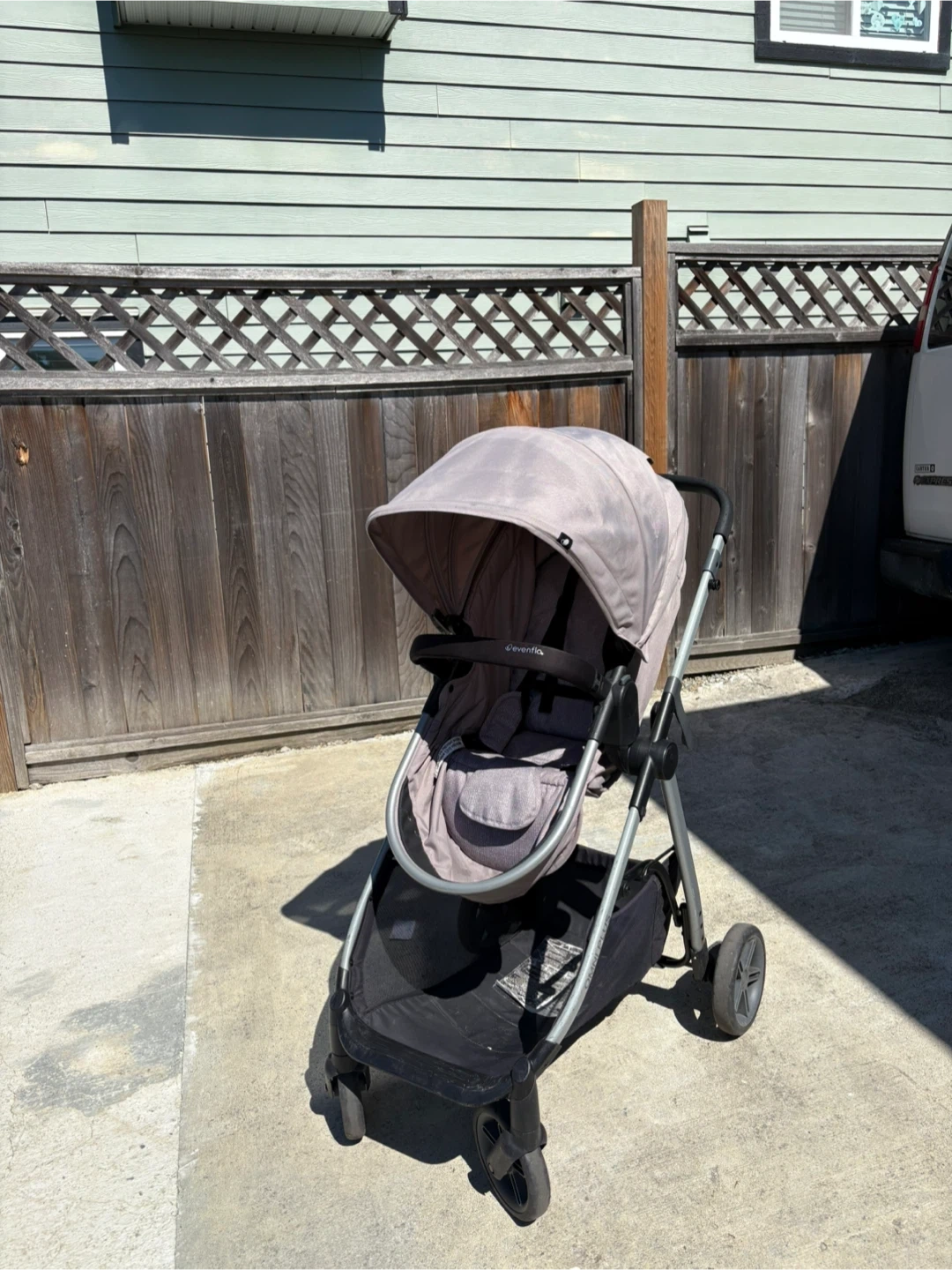 Selling an Evenflo Pivot Modular Travel System Stroller. It's in good condition and ready for a new home. Please note there is some wear and tear on the foam handle, as pictured