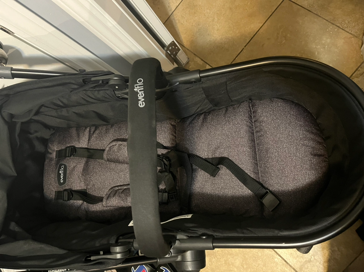 This travel system is great it can be used as a bassinet or stroller. It faces both parents and outside world the seat can be used or in stroller form. Giving the parents options. It has only been used 3 times