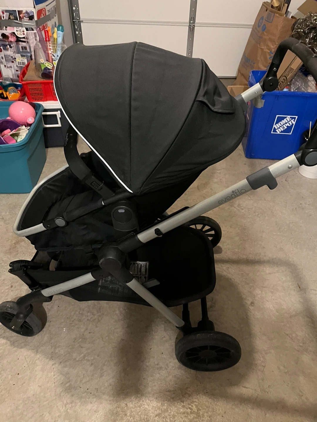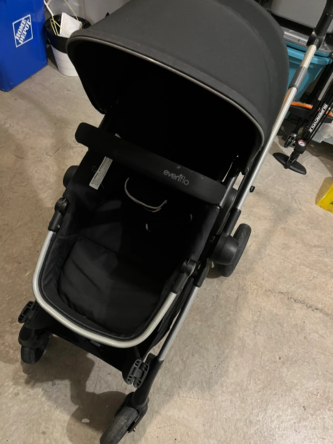 Selling an Evenflo Pivot Xplore stroller wagon in black. It's in great condition and ready for new adventures. This versatile stroller wagon is perfect for families on the go!