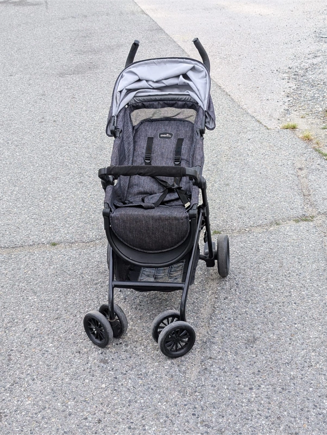 Selling an Evenflo stroller in great condition! It's a practical and reliable option for getting around with your little one. It has a storage basket underneath for your convenience. The stroller is easy to fold and transport, making it ideal for families on the go