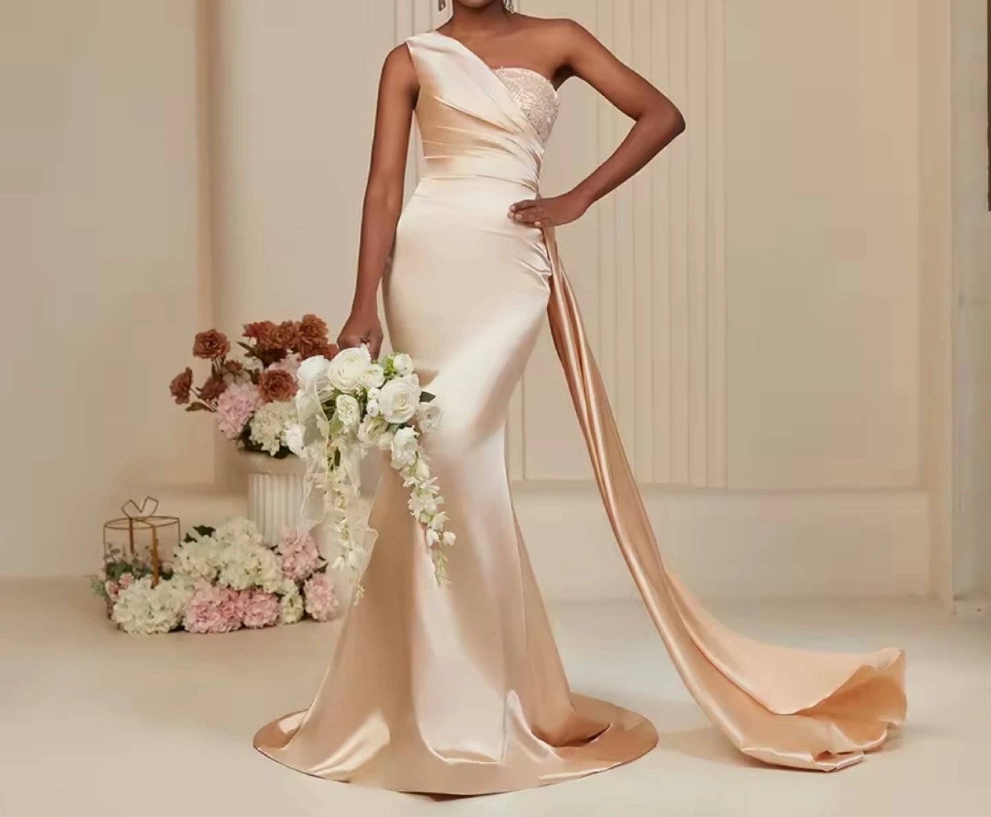 Cream Halter Dress with Gold Beading