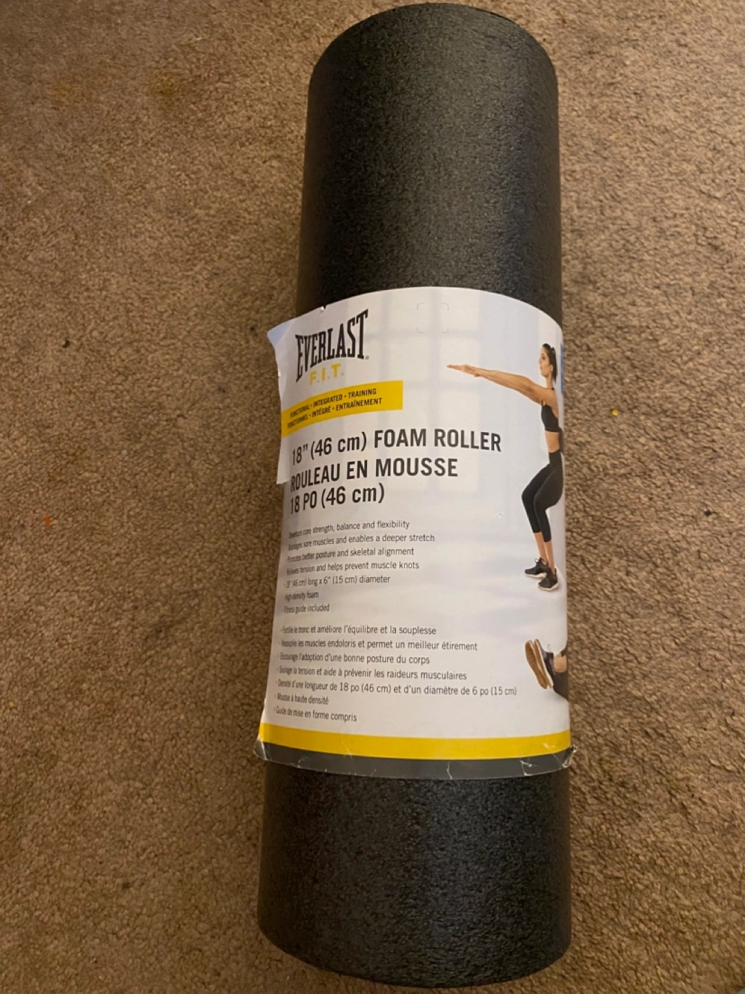 Selling an Everlast F.I.T. 18" (46 cm) foam roller. It's great for improving core strength, balance, and flexibility. It also helps relieve muscle tension and promotes skeletal alignment. The roller is 46 cm long and 15 cm in diameter.