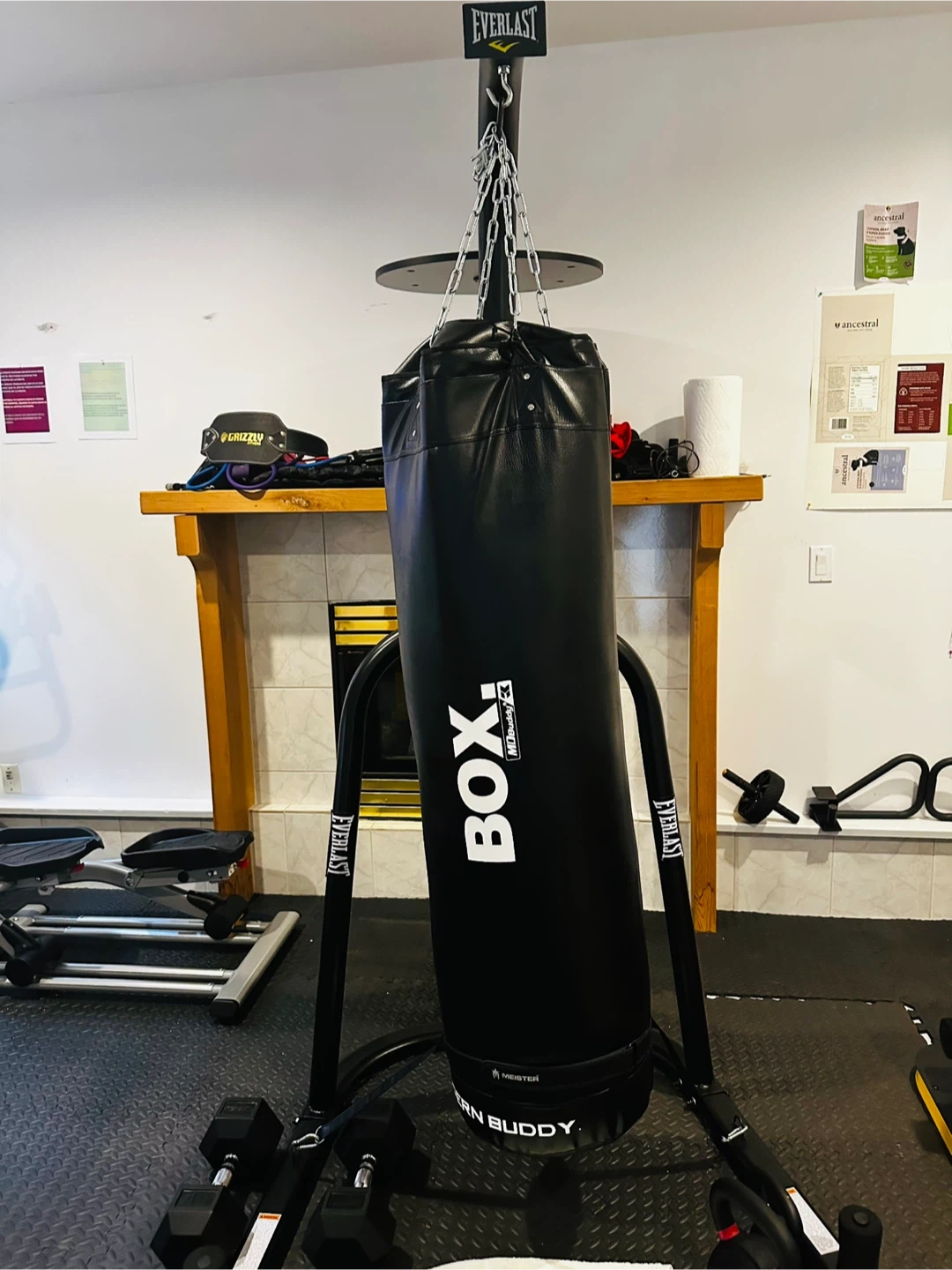 Selling an Everlast boxing bag complete with its stand. It's in great shape and ready for a new home gym! Perfect for anyone looking to get into boxing or just needs a solid workout.